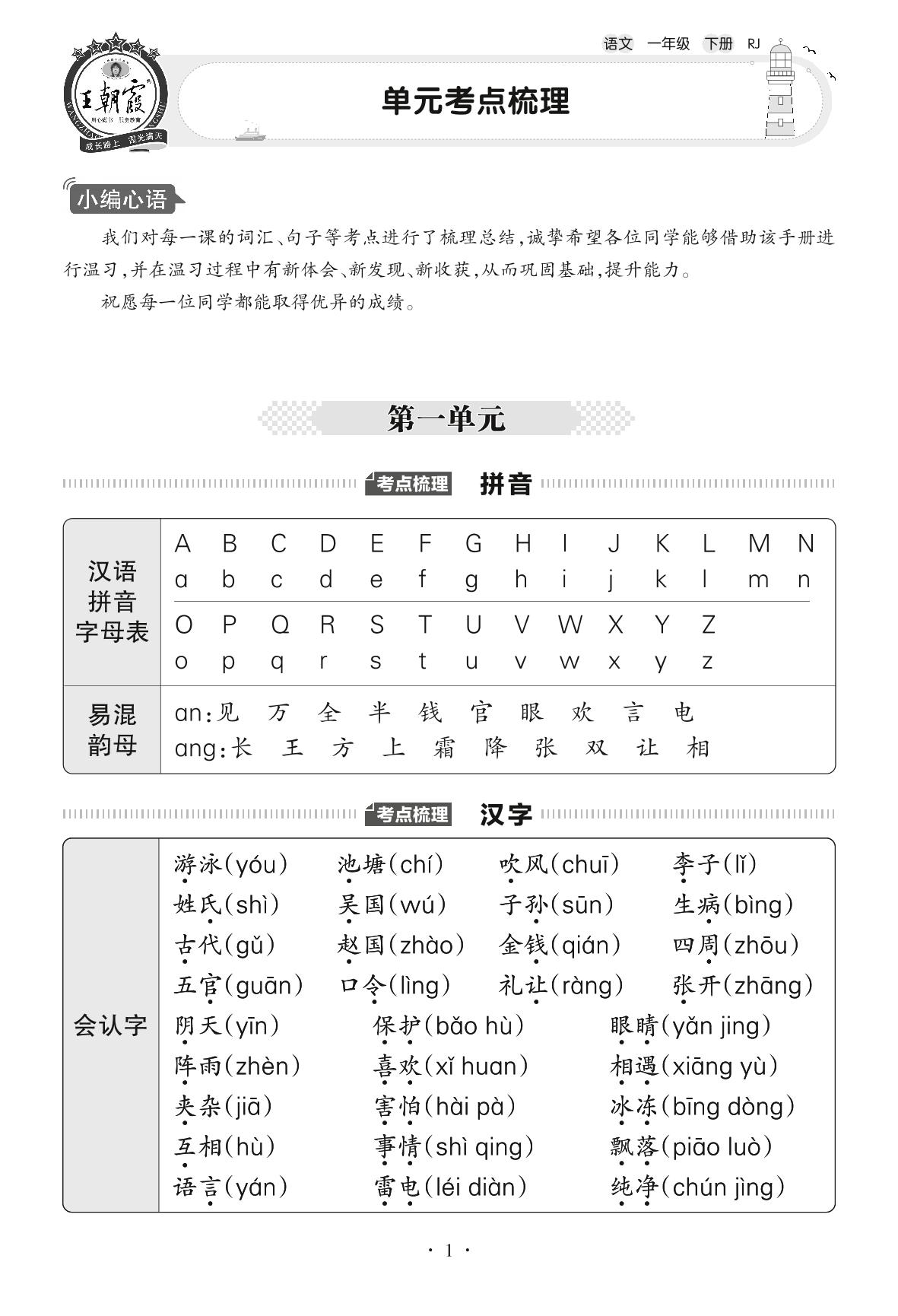 2022下册一年级语文人教版 单元考点梳理——第一单元