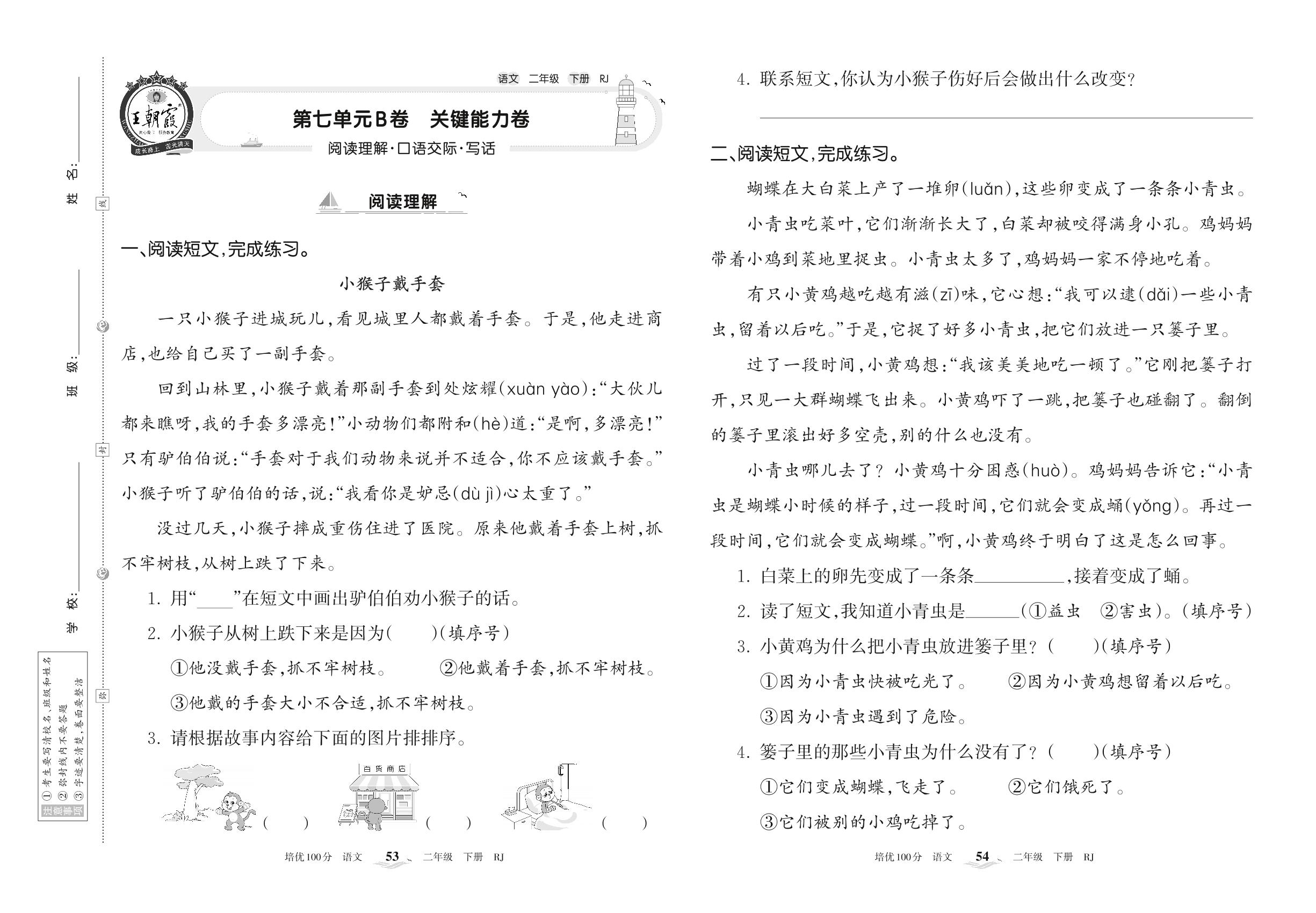 2022下册二年级语文人教版 第七单元B卷 关键能力卷