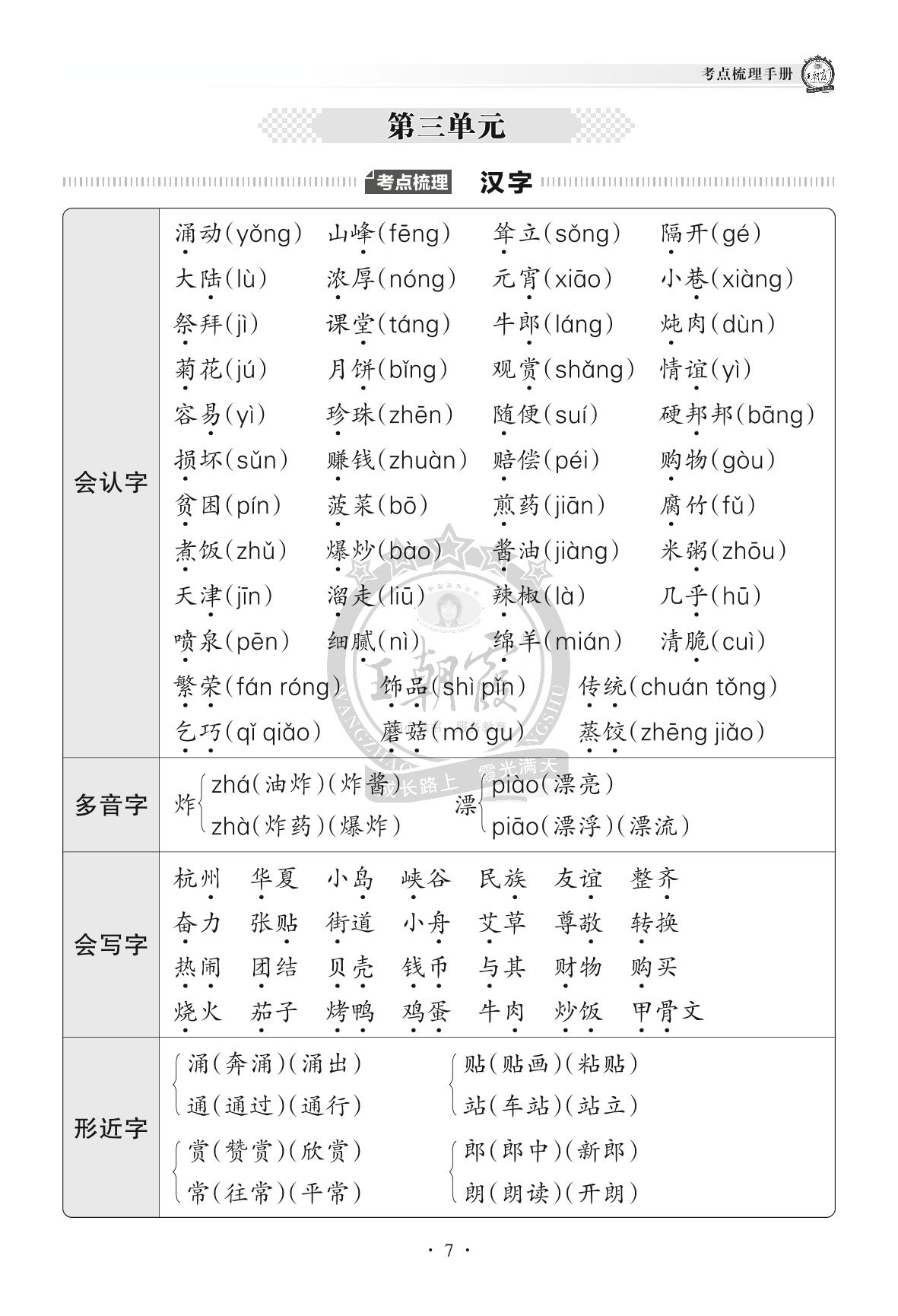 2022下册二年级语文人教版 单元考点梳理——第三单元