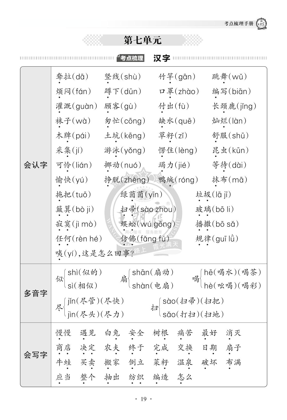 2022下册二年级语文人教版 单元考点梳理——第七单元