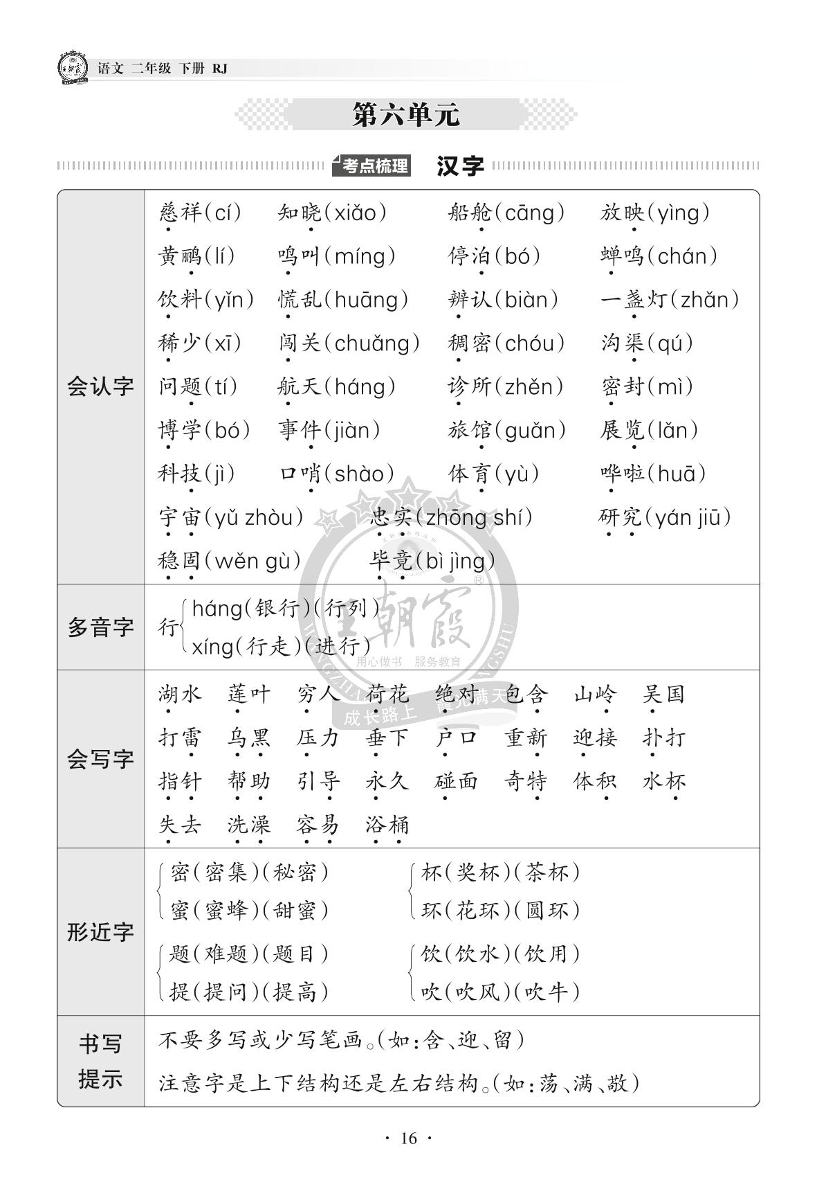 2022下册二年级语文人教版 单元考点梳理——第六单元