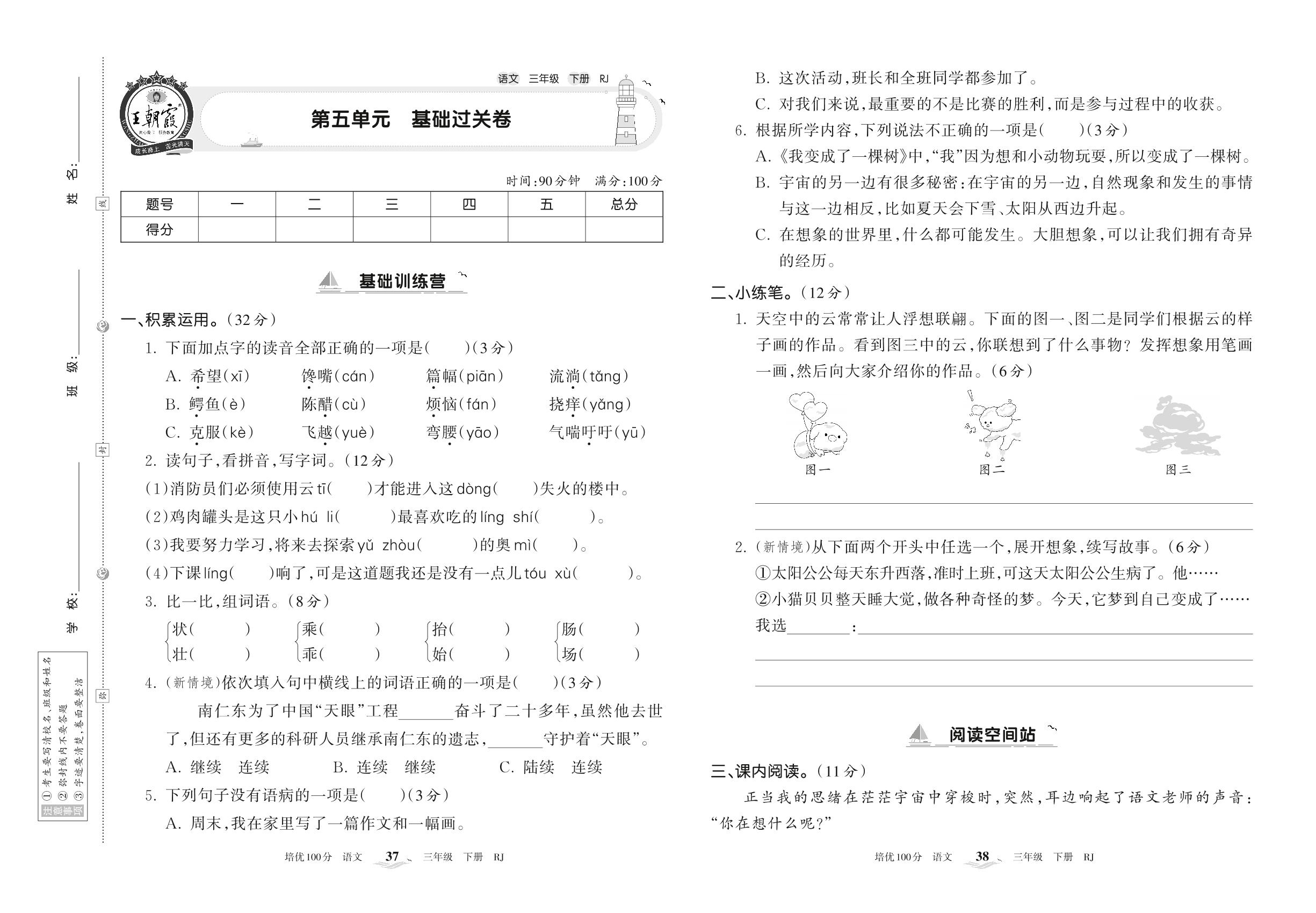 2022下册三年级语文人教版 第五单元 基础过关卷