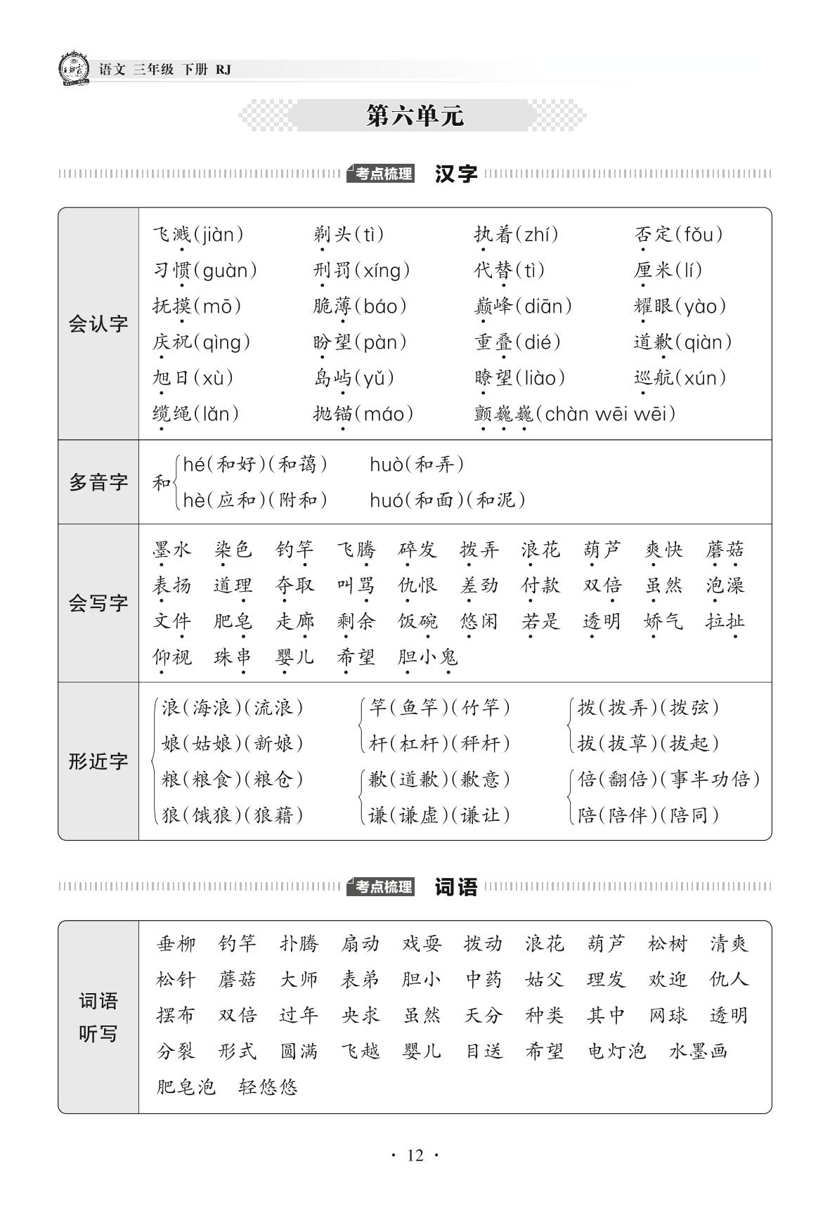 2022下册三年级语文人教版 单元考点梳理——第六单元