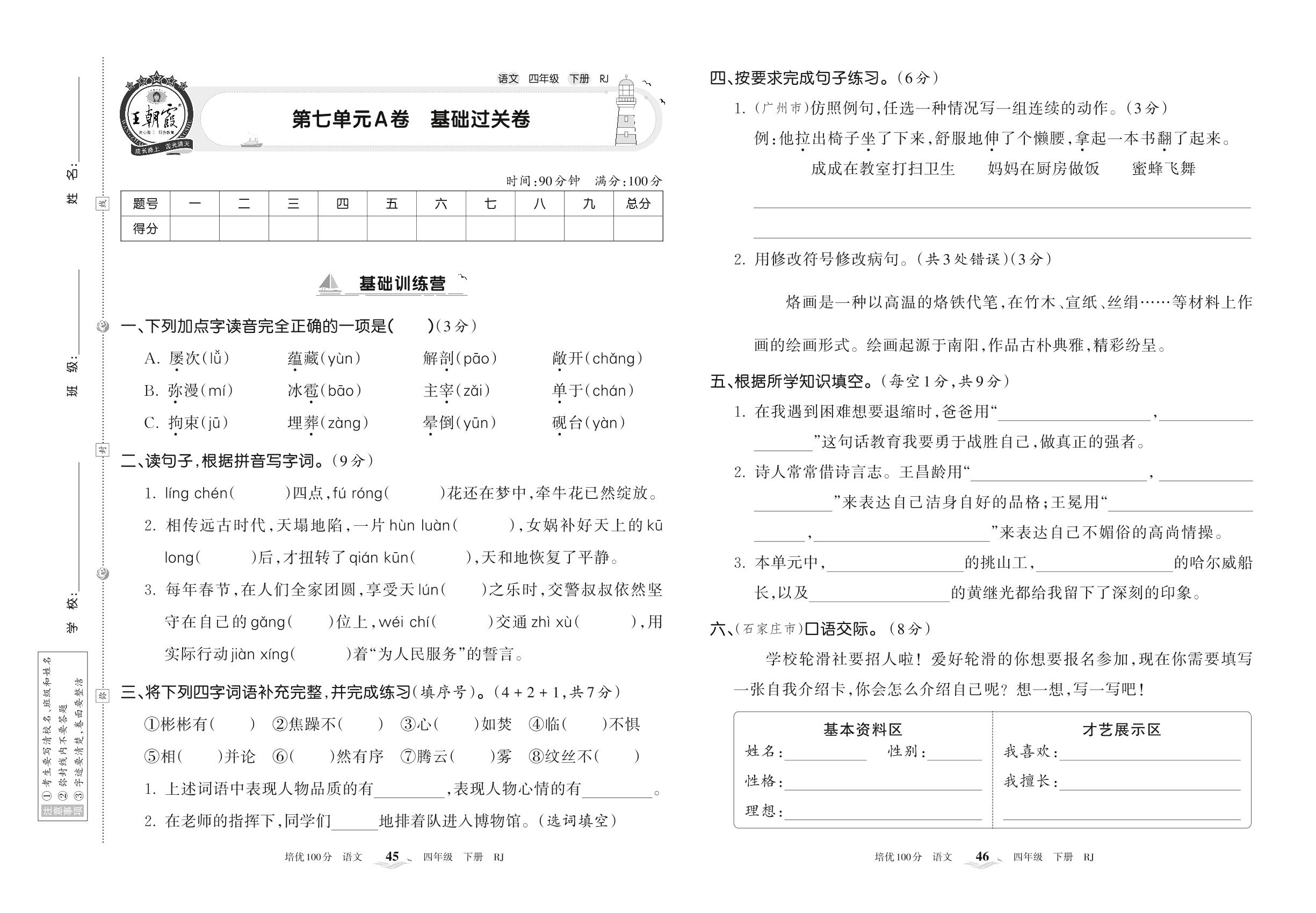 四年级语文人教版下册单元卷