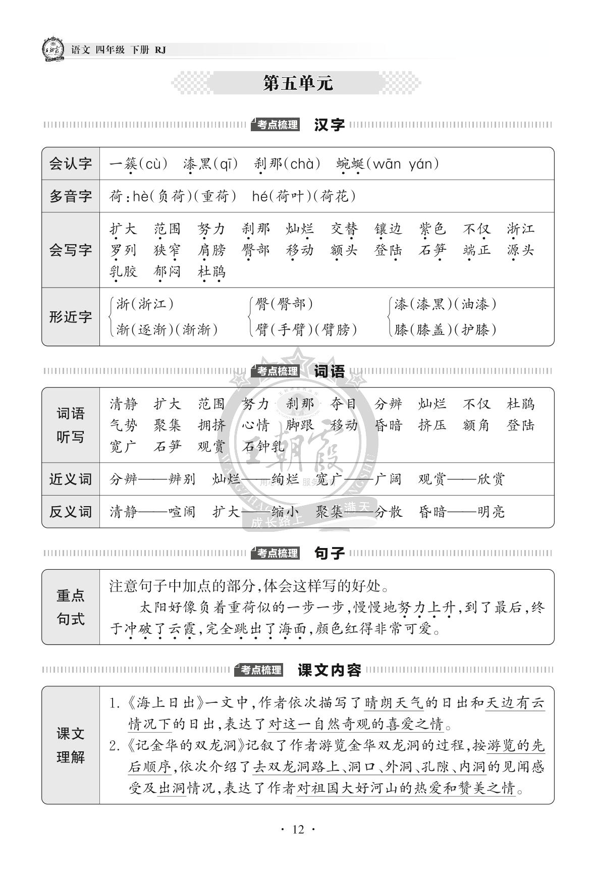 2022下册四年级语文人教版 单元考点梳理——第五单元