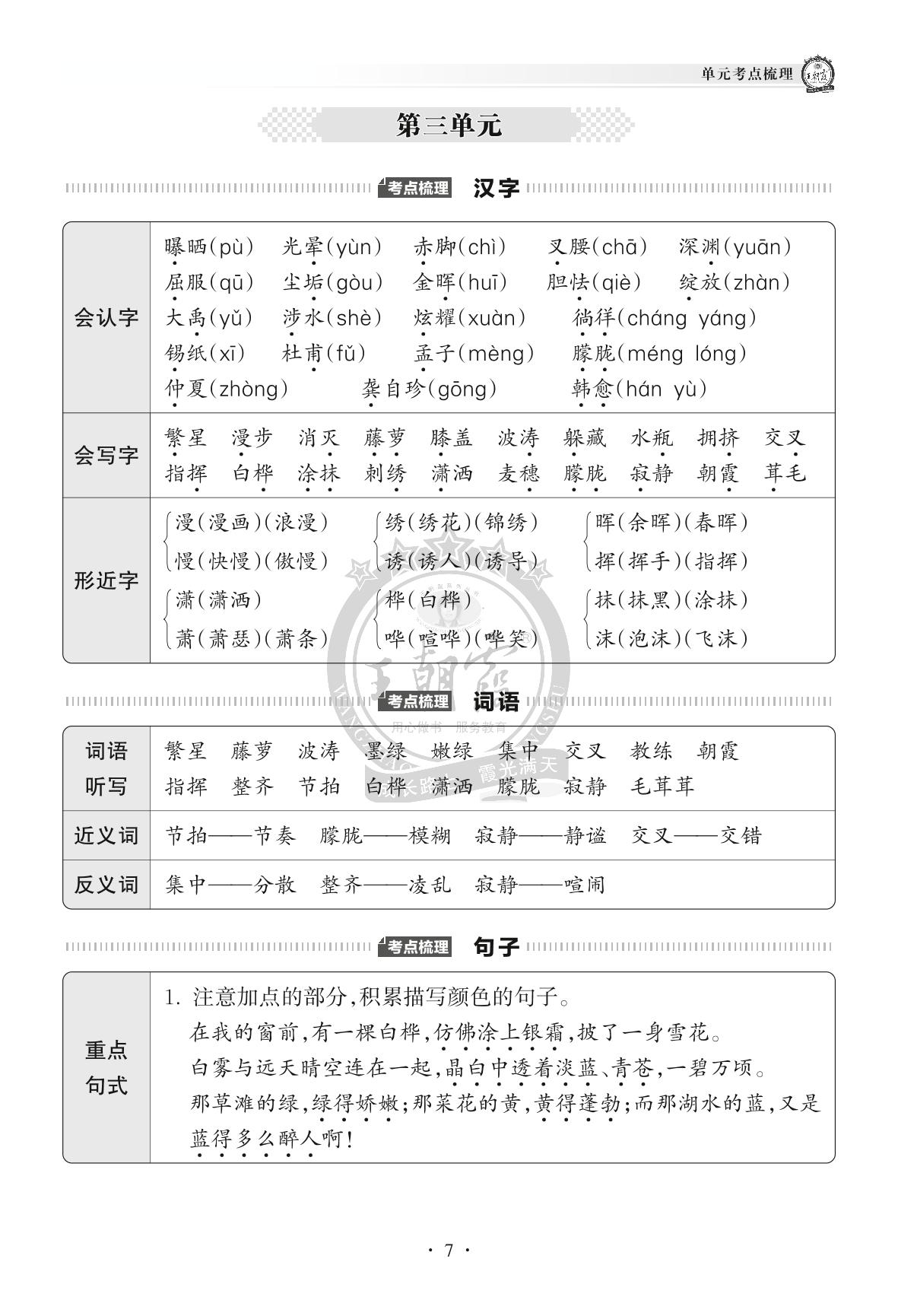 2022下册四年级语文人教版 单元考点梳理——第三单元