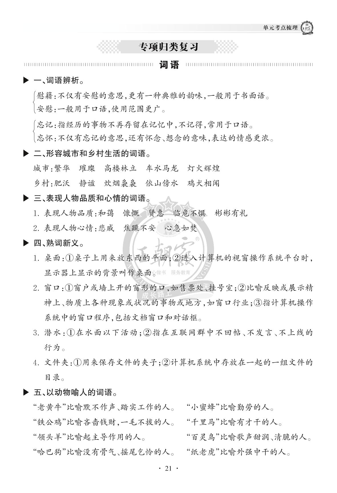 2022下册四年级语文人教版 单元考点梳理——专项归类复习