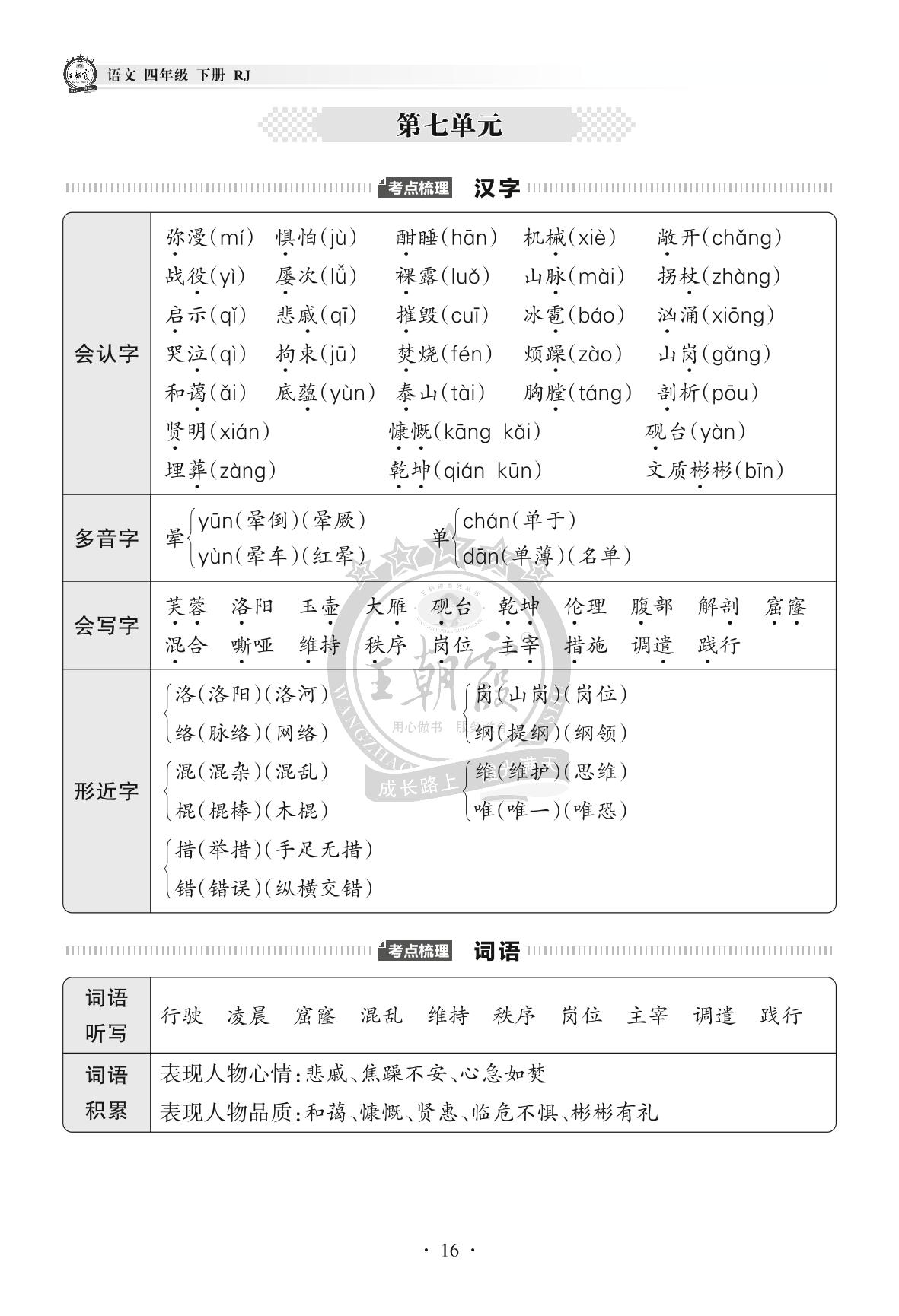 2022下册四年级语文人教版 单元考点梳理——第七单元