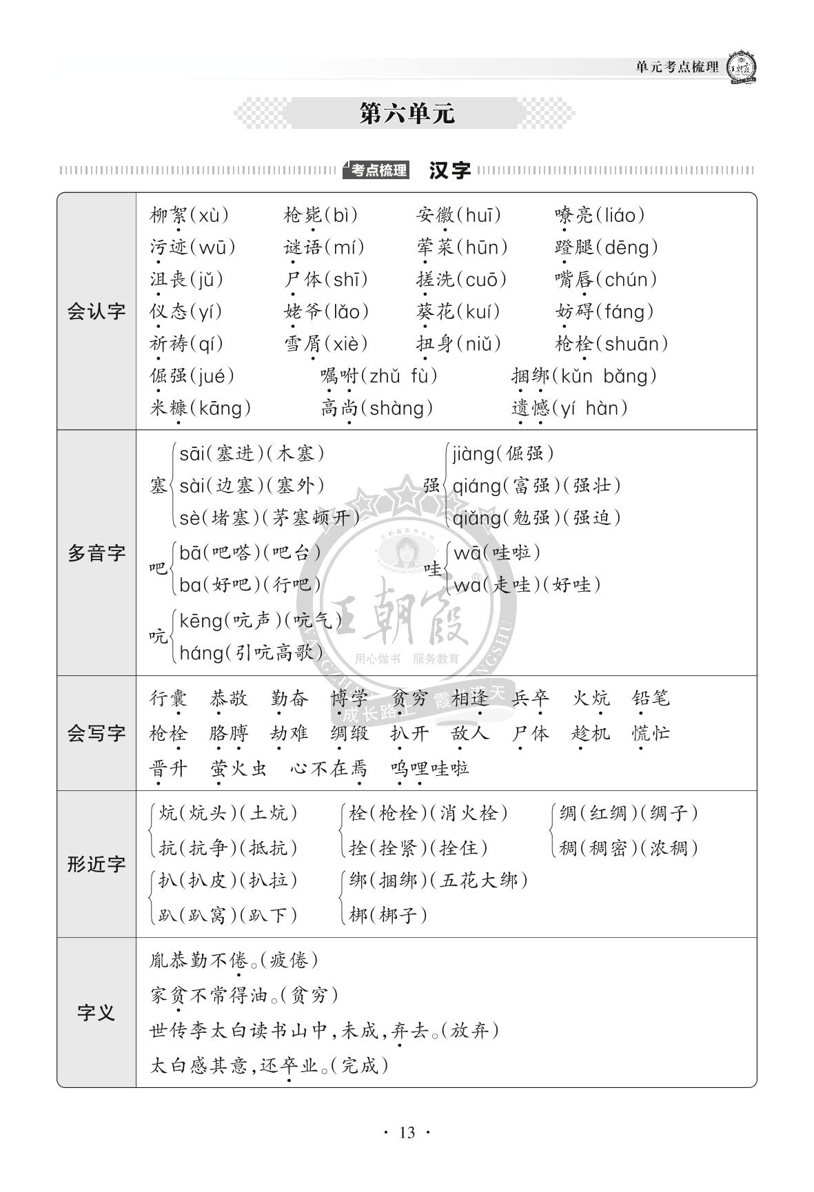 2022下册四年级语文人教版 单元考点梳理——第六单元