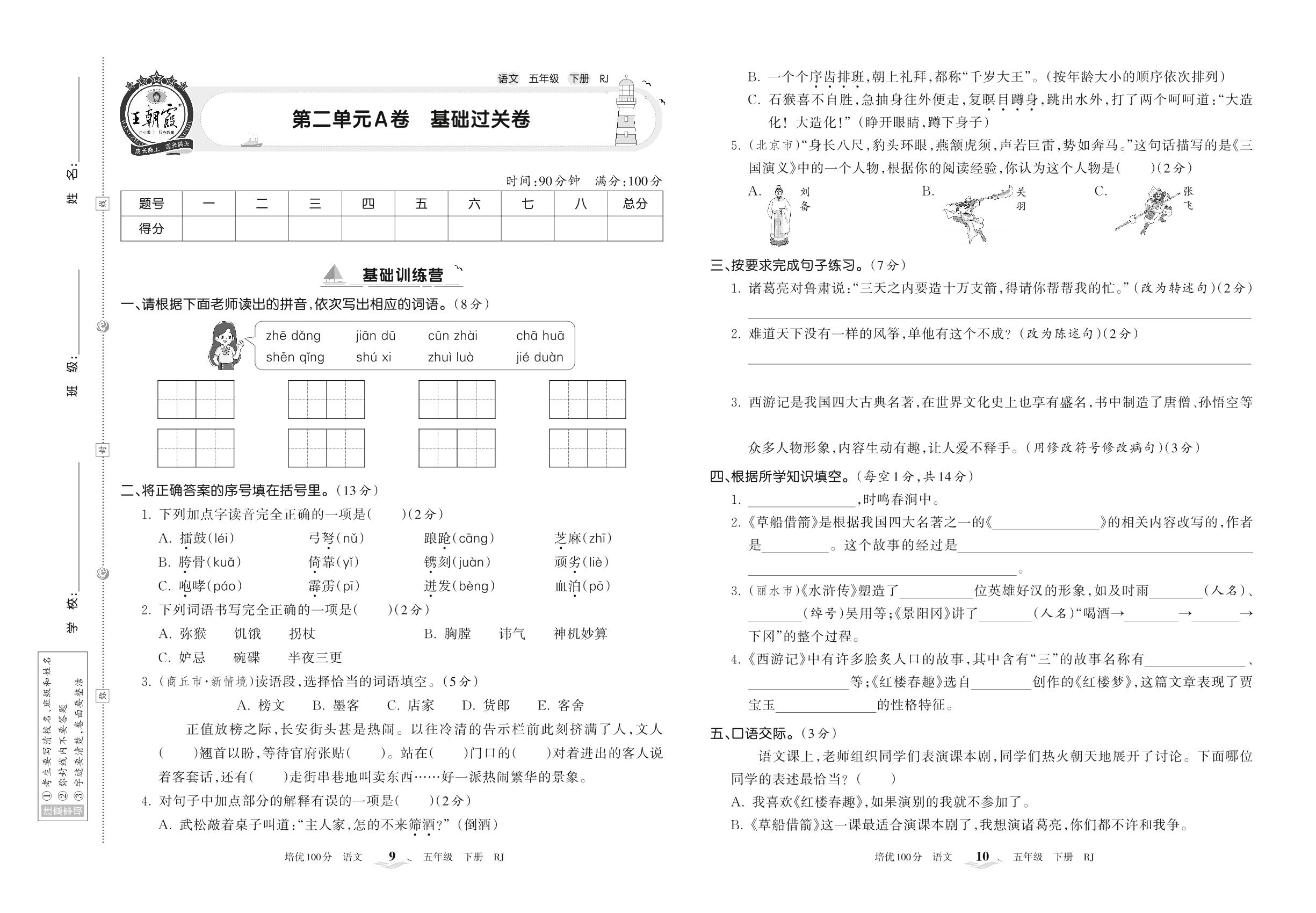 五年级语文人教版下册单元卷