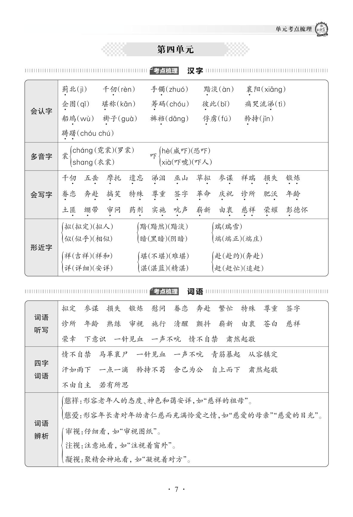2022下册五年级语文人教版 单元考点梳理——第四单元