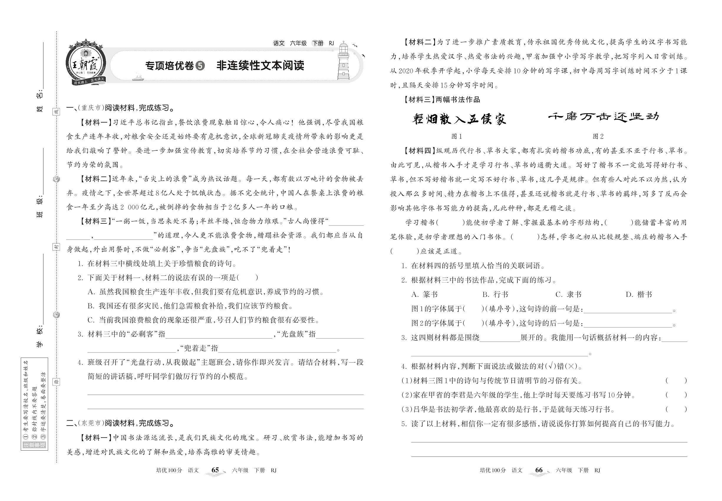 2022下册六年级语文人教版 专项培优卷5 非连续性文本阅读