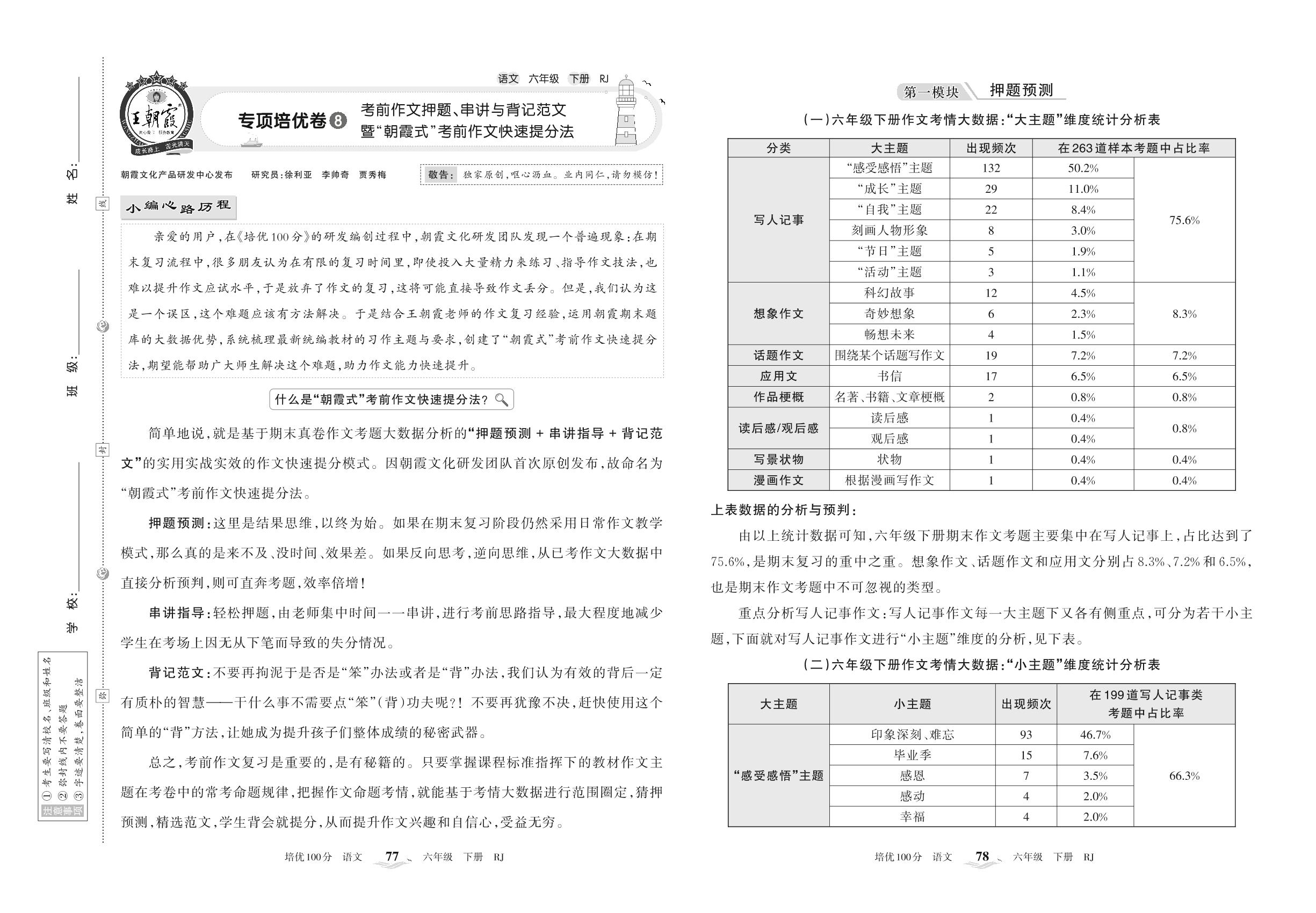 2022下册六年级语文人教版 专项培优卷8 考前作文押题、串讲与背记范文暨“朝霞式”考前作文快速提分法