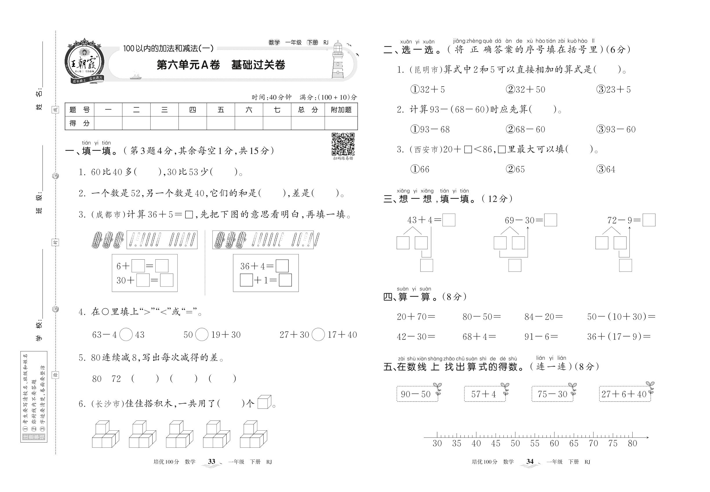 一年级数学人教版下册单元卷