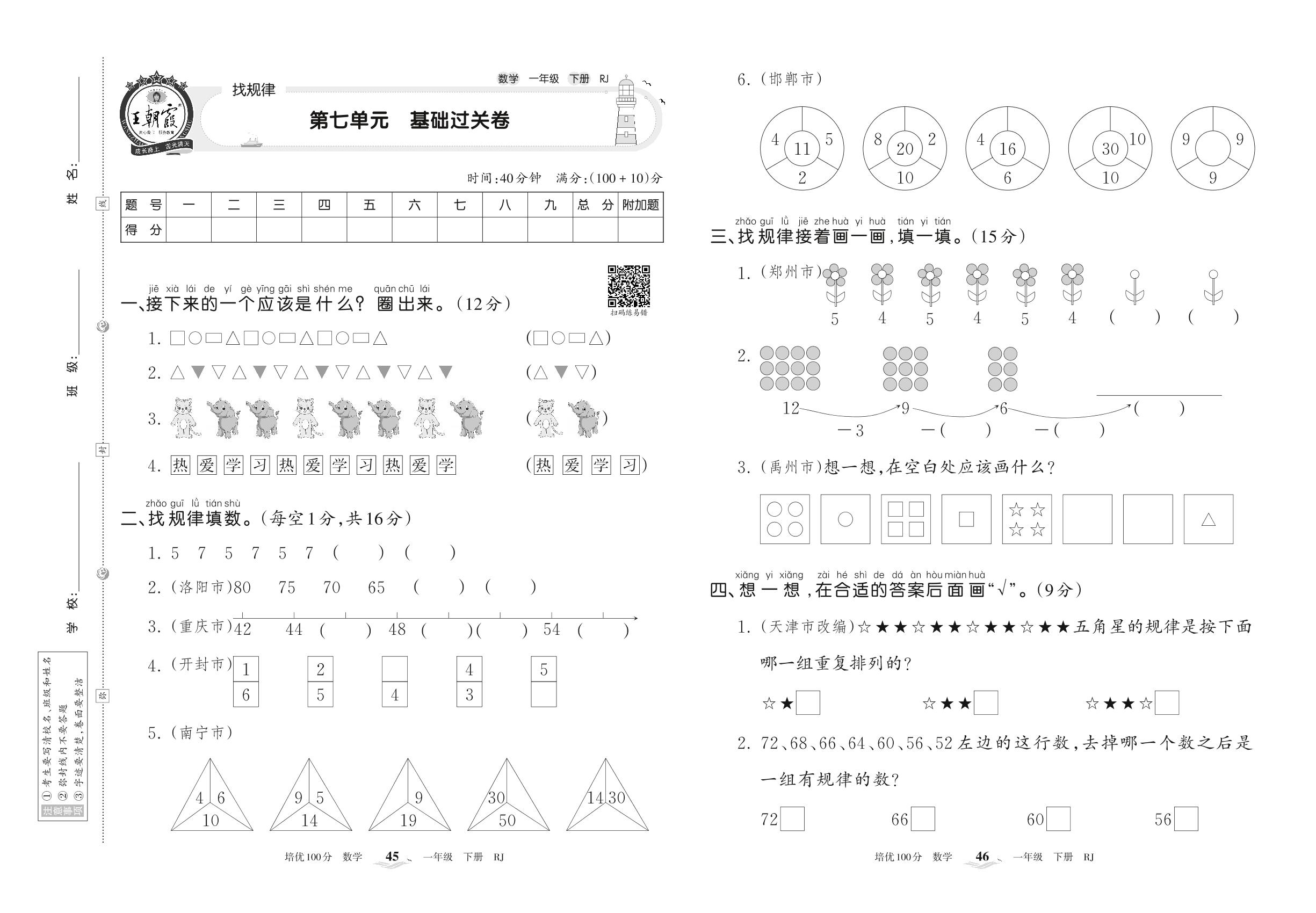 2022下册一年级数学人教版 第七单元 基础过关卷