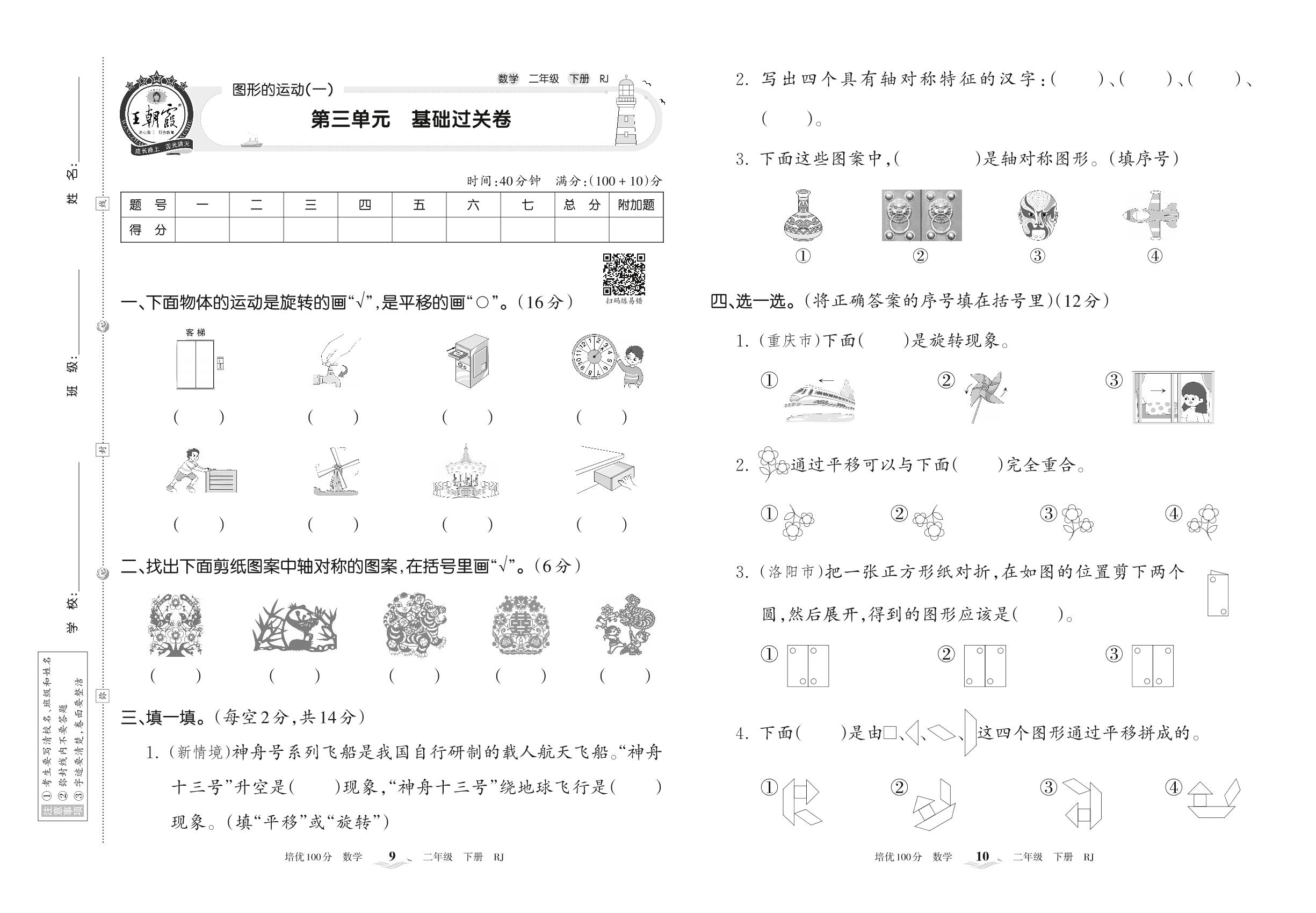 2022下册二年级数学人教版 第三单元 基础过关卷