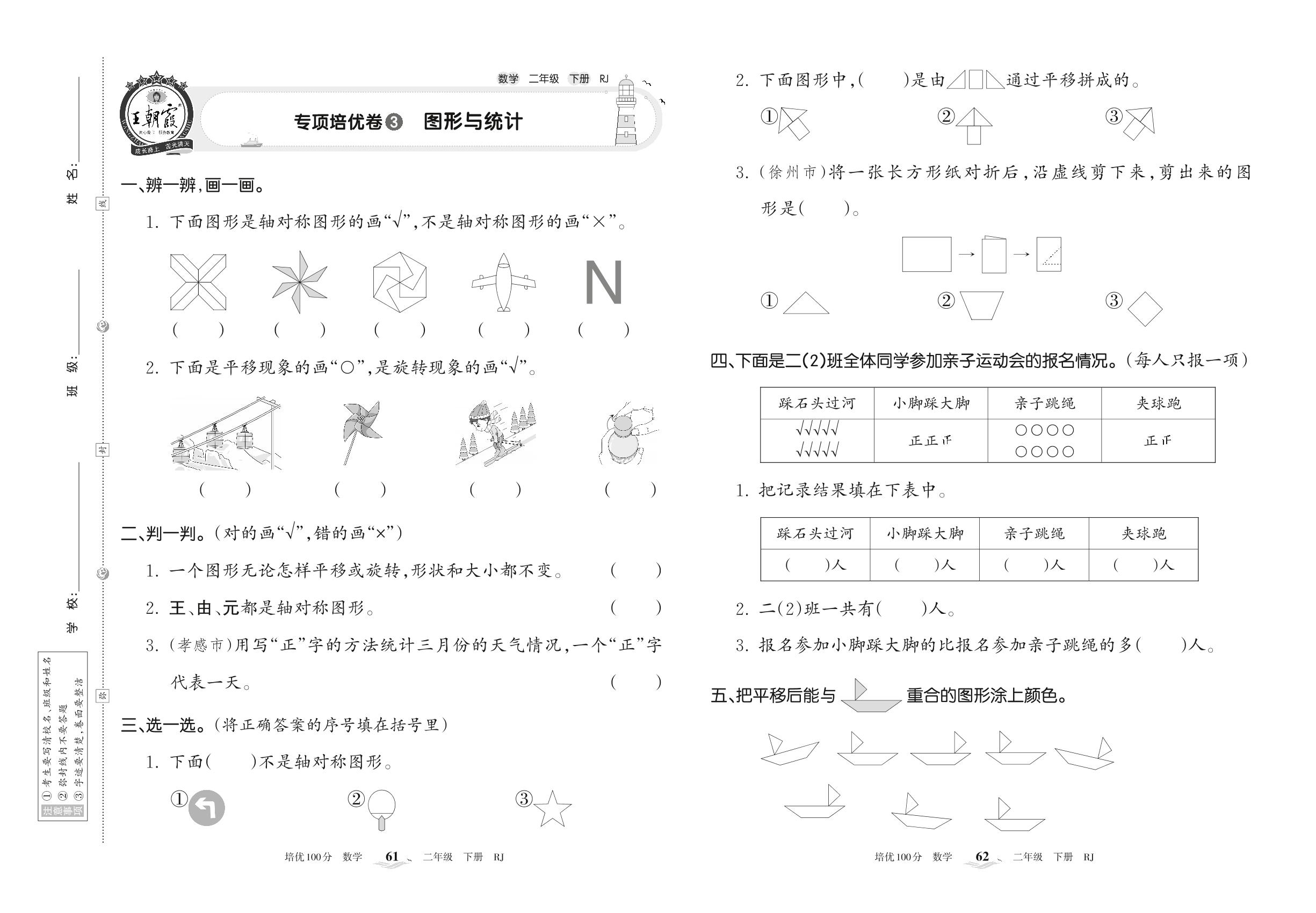 2022下册二年级数学人教版 专项培优卷3 图形与统计