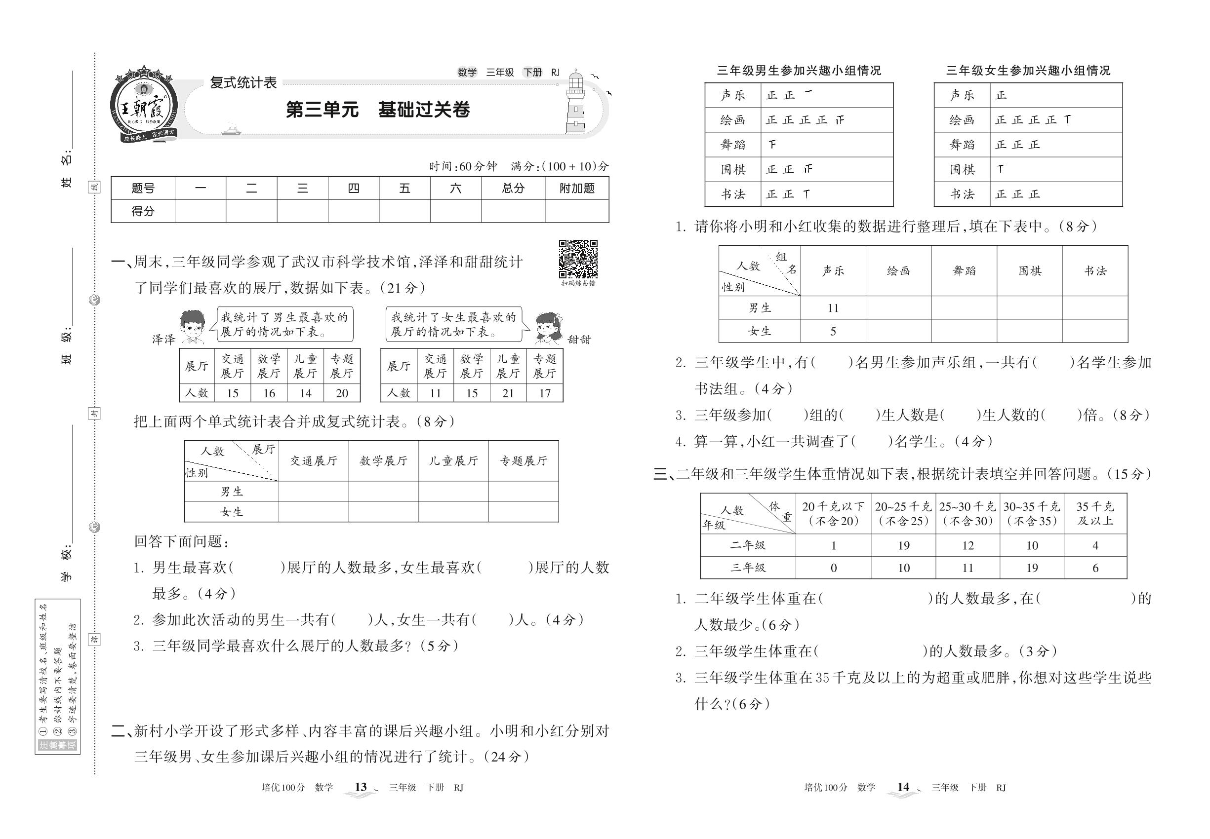 三年级数学人教版下册单元卷