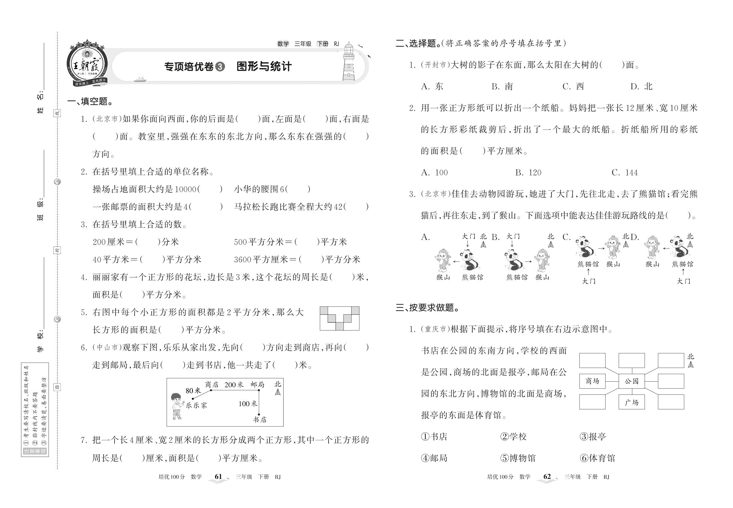 2022下册三年级数学人教版 专项培优卷3 图形与统计