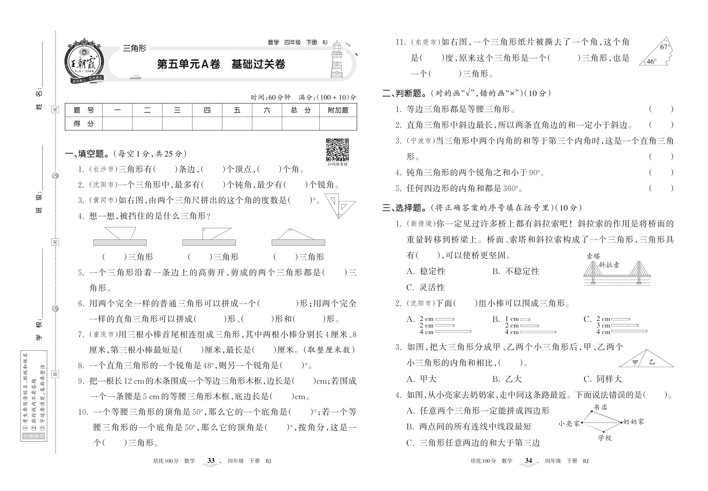 四年级数学人教版下册单元卷