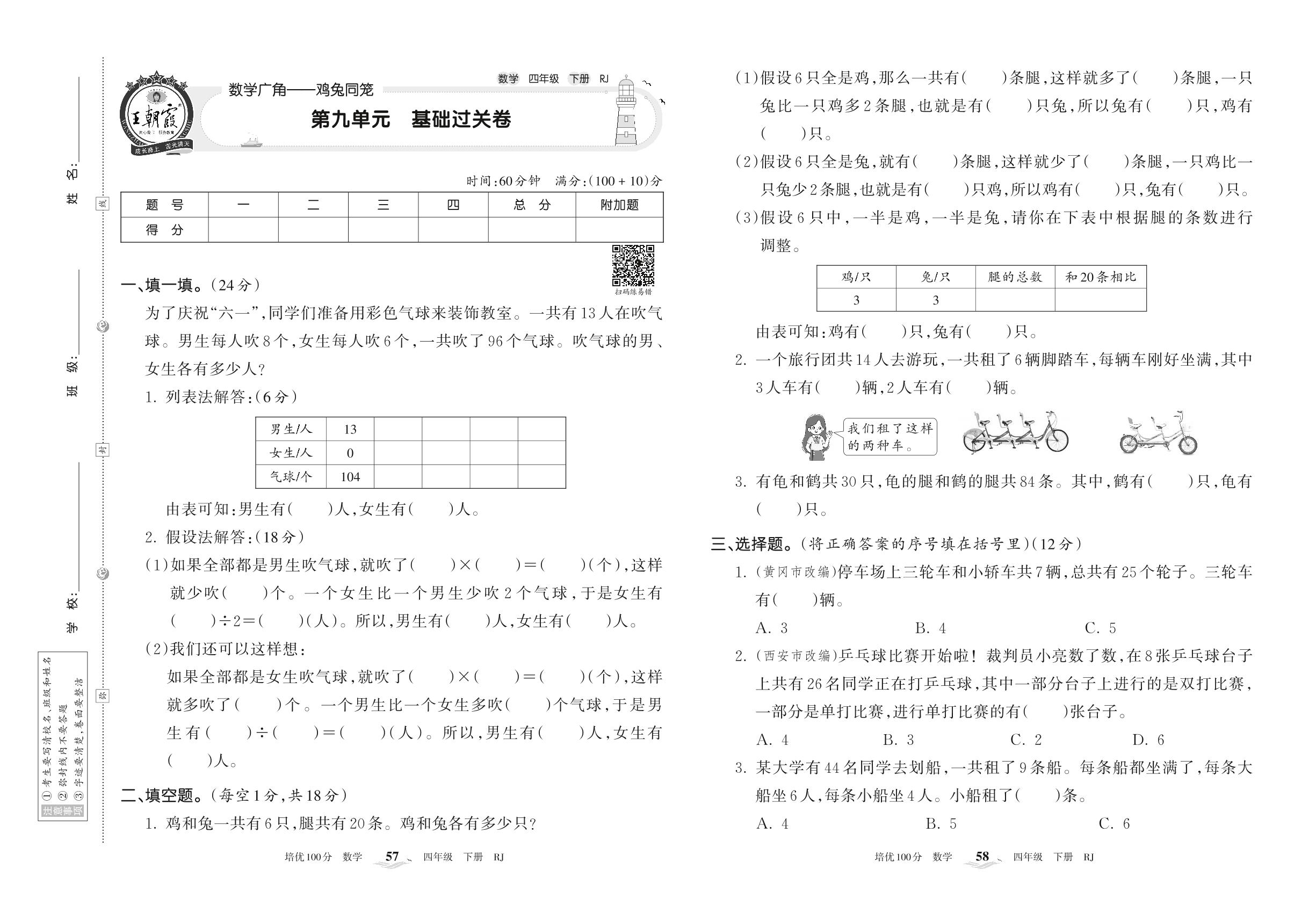 2022下册四年级数学人教版 第九单元 基础过关卷