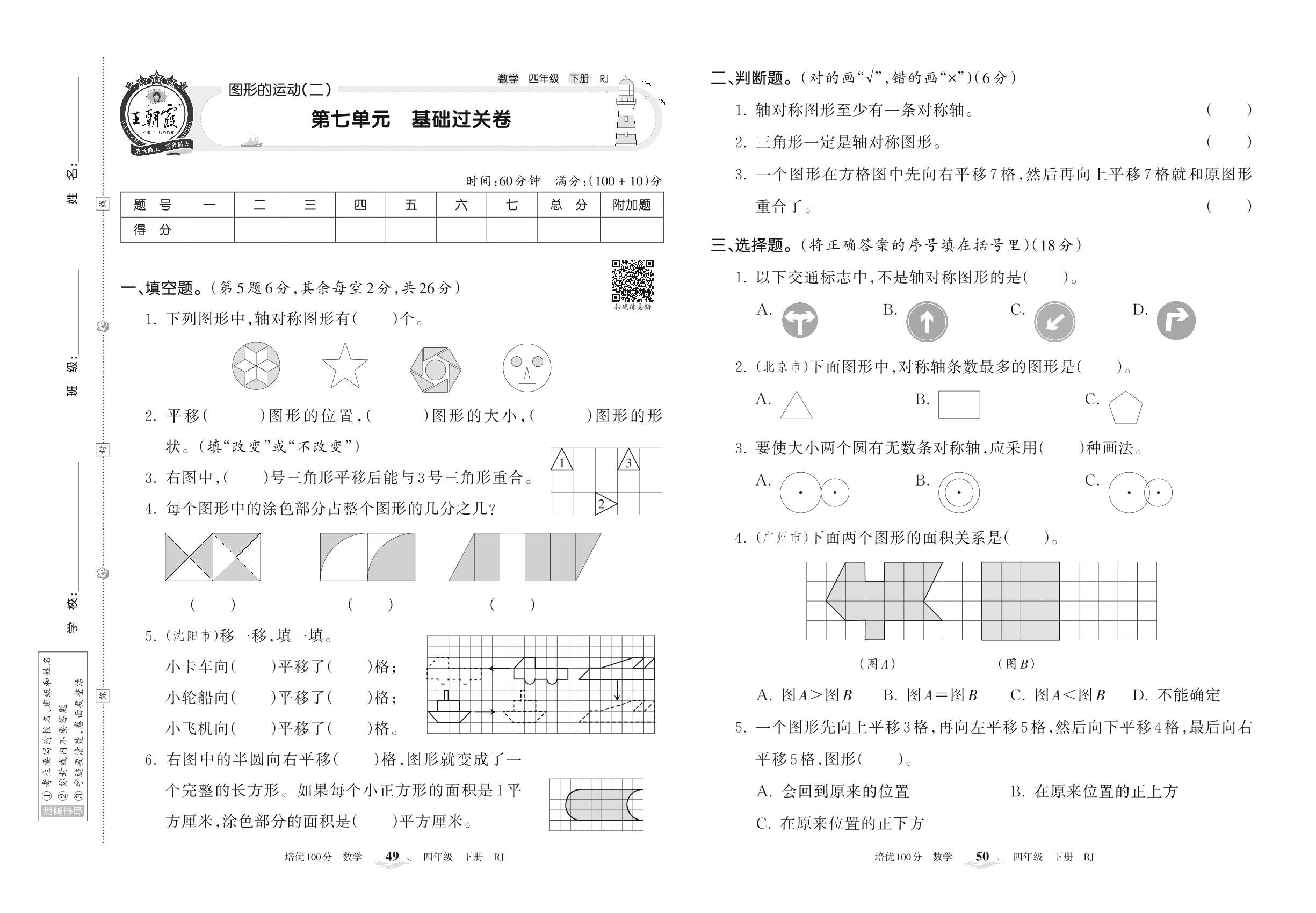 2022下册四年级数学人教版 第七单元 基础过关卷