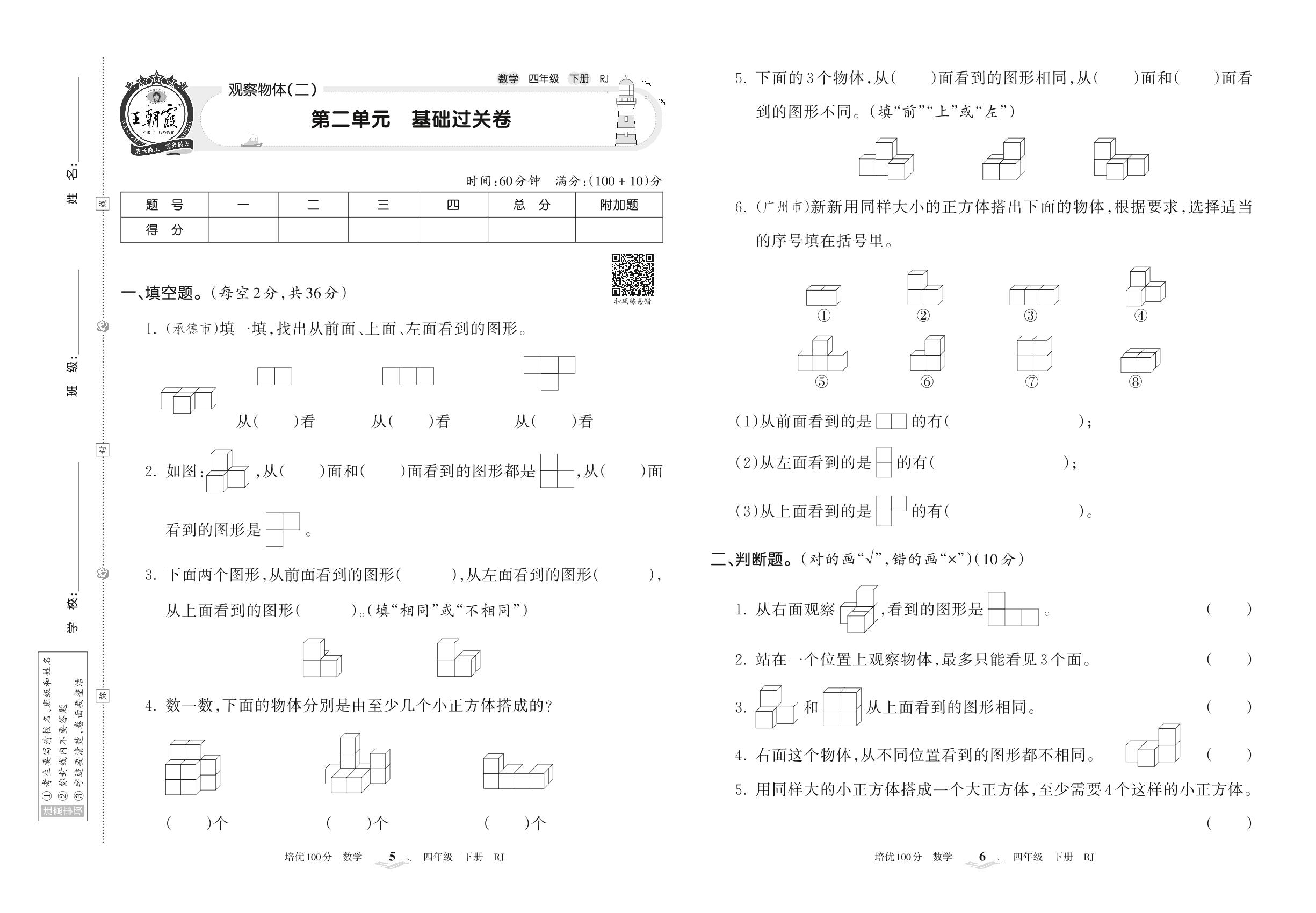 2022下册四年级数学人教版 第二单元 基础过关卷