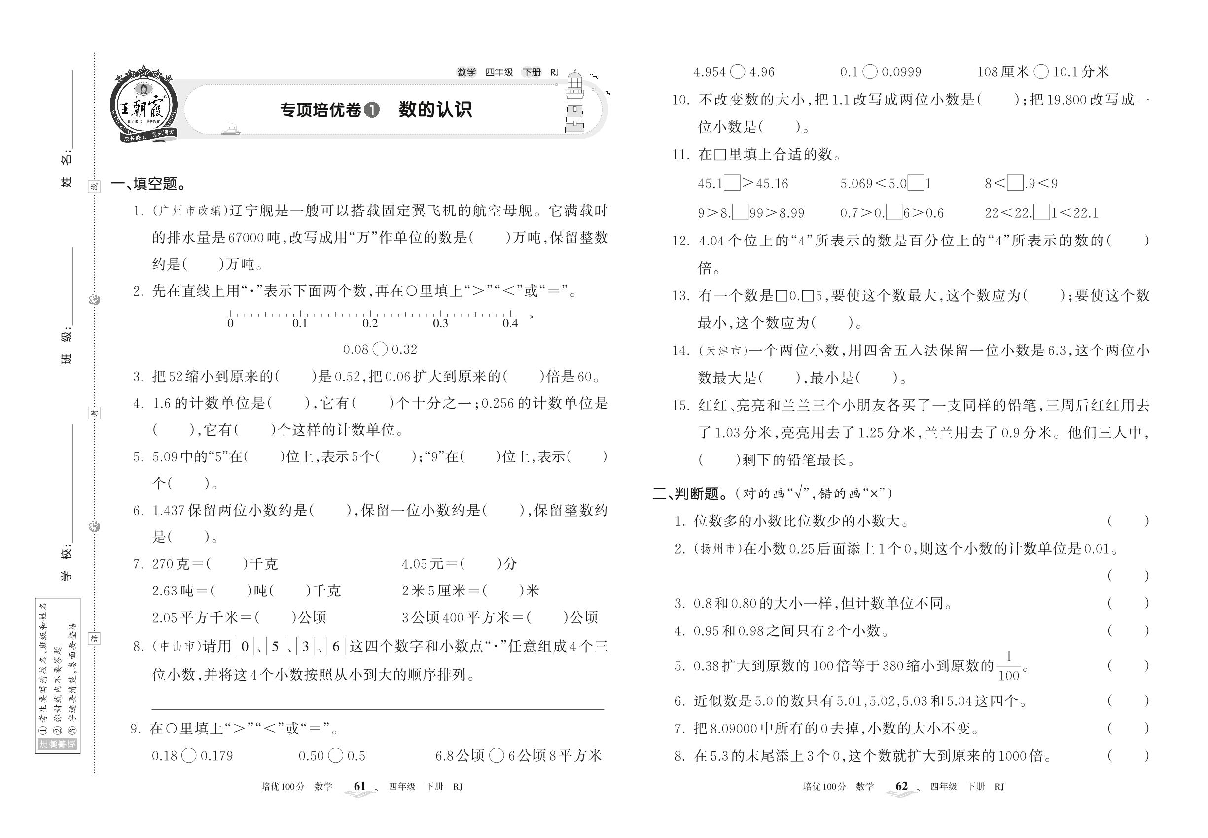 2022下册四年级数学人教版 专项培优卷1 数的认识