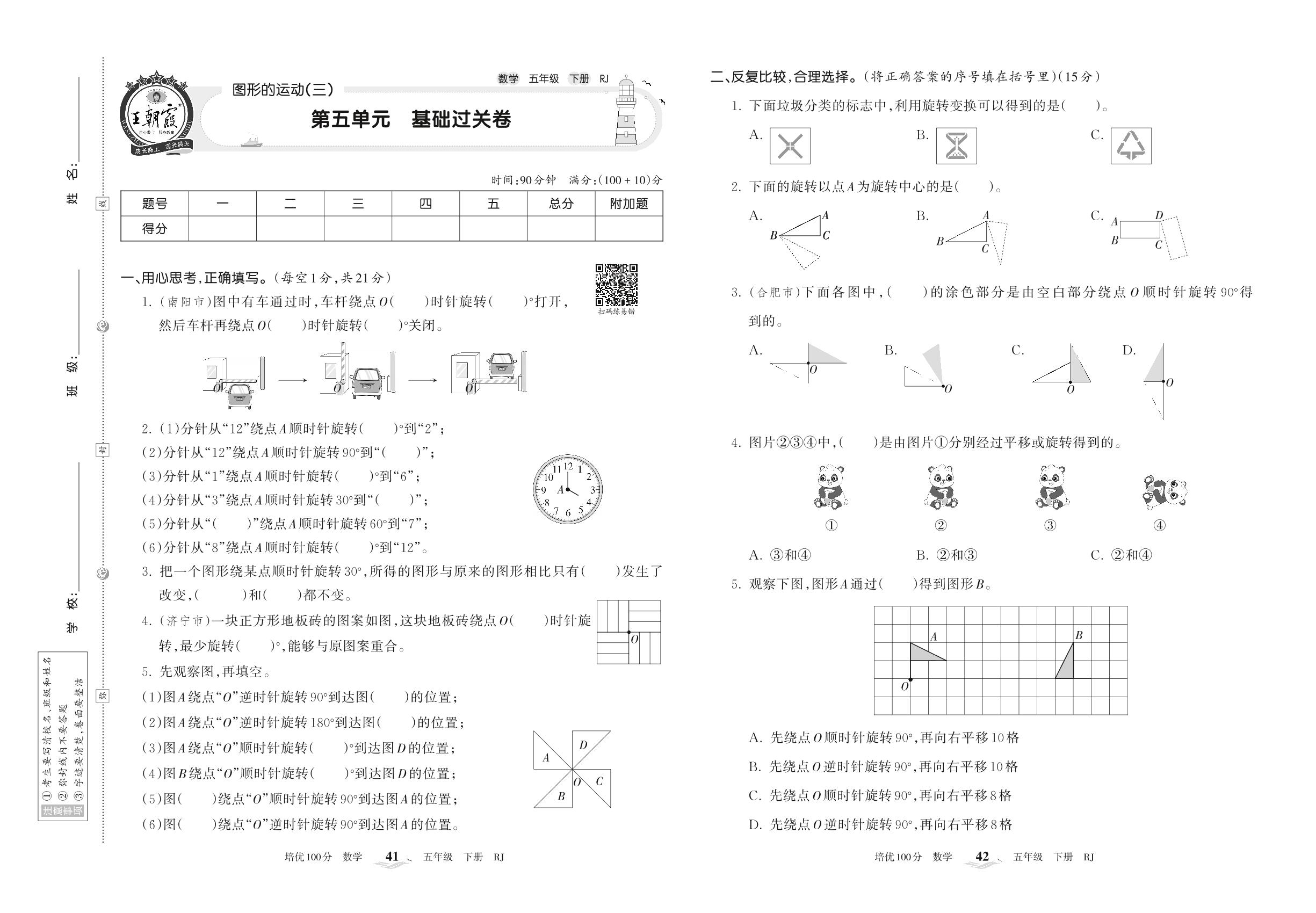 2022下册五年级数学人教版 第五单元 基础过关卷