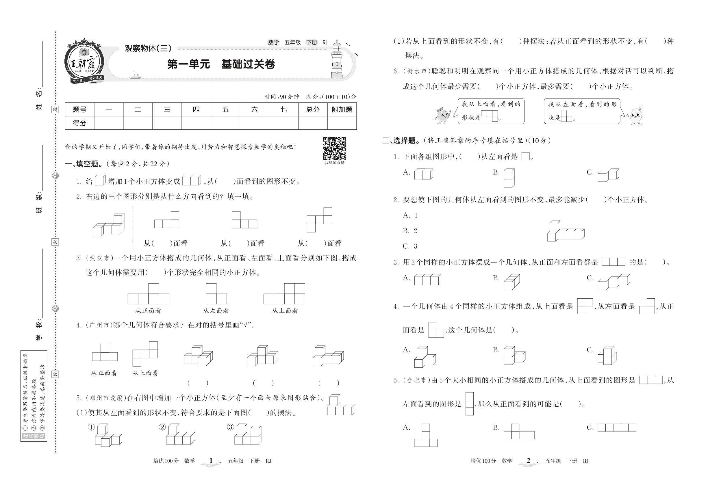 2022下册五年级数学人教版 第一单元 基础过关卷