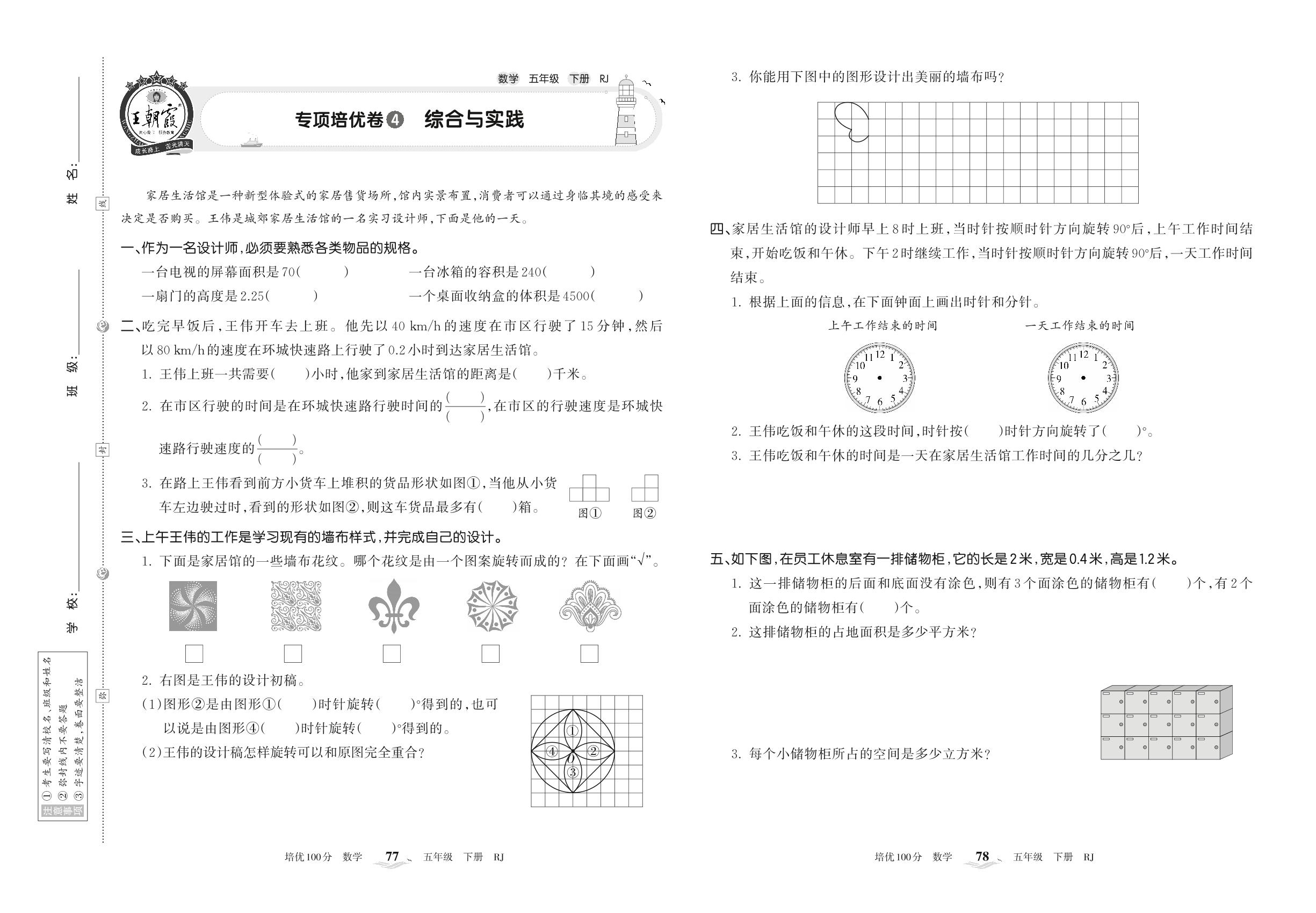 2022下册五年级数学人教版 专项培优卷4 综合与实践