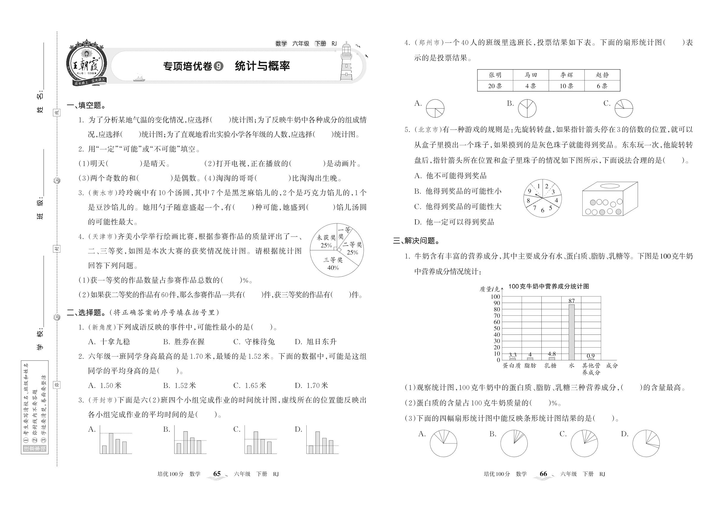 2022下册六年级数学人教版 专项培优卷9 统计与概率