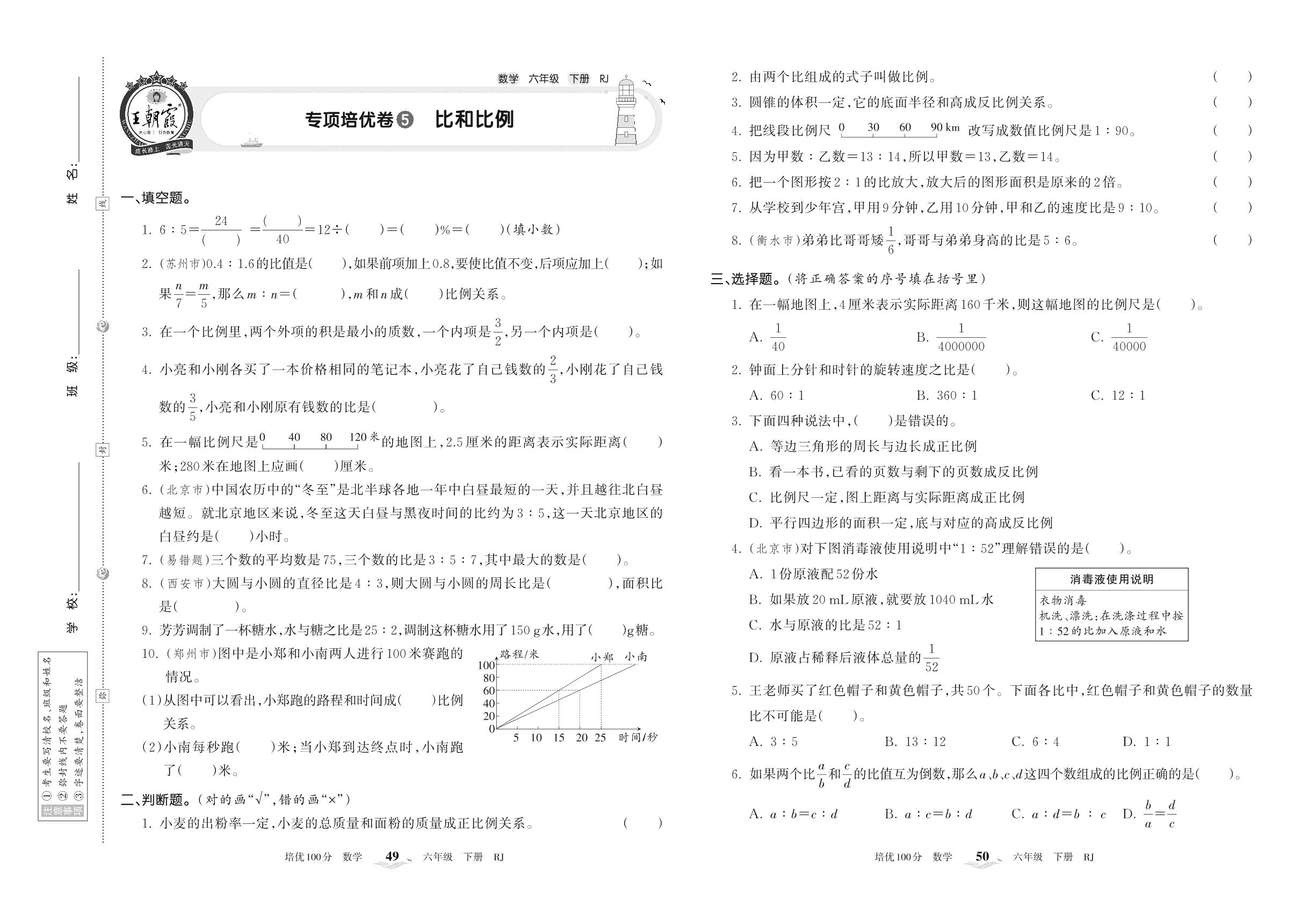 2022下册六年级数学人教版 专项培优卷5 比和比例