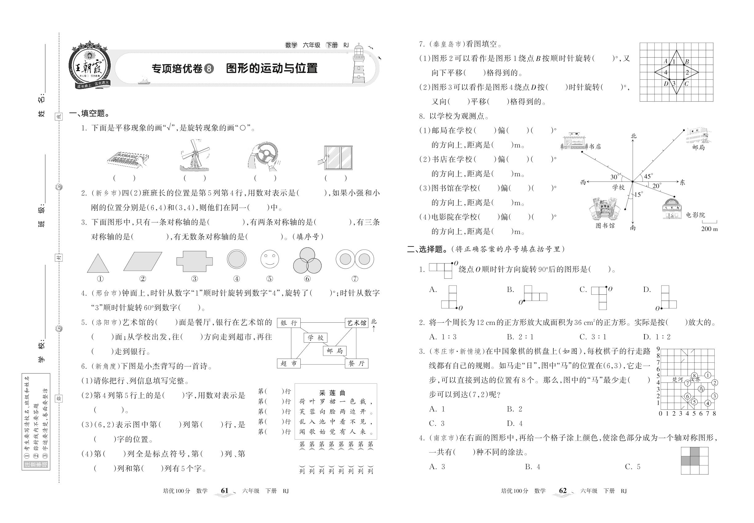 2022下册六年级数学人教版 专项培优卷8 图形的运动与位置