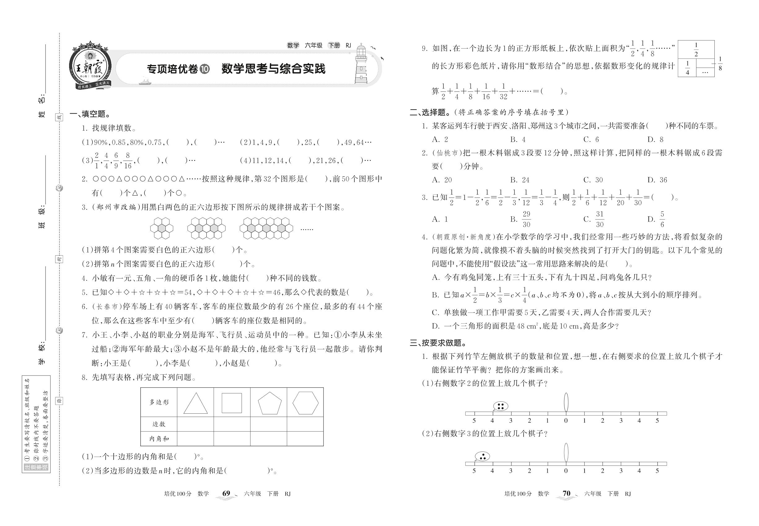 2022下册六年级数学人教版 专项培优卷10 数学思考与综合实践