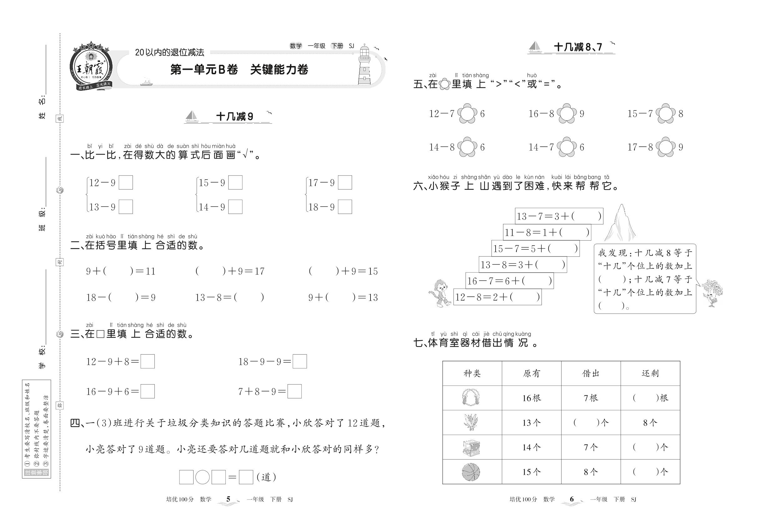 2022下册一年级数学苏教版 第一单元B卷 关键能力卷