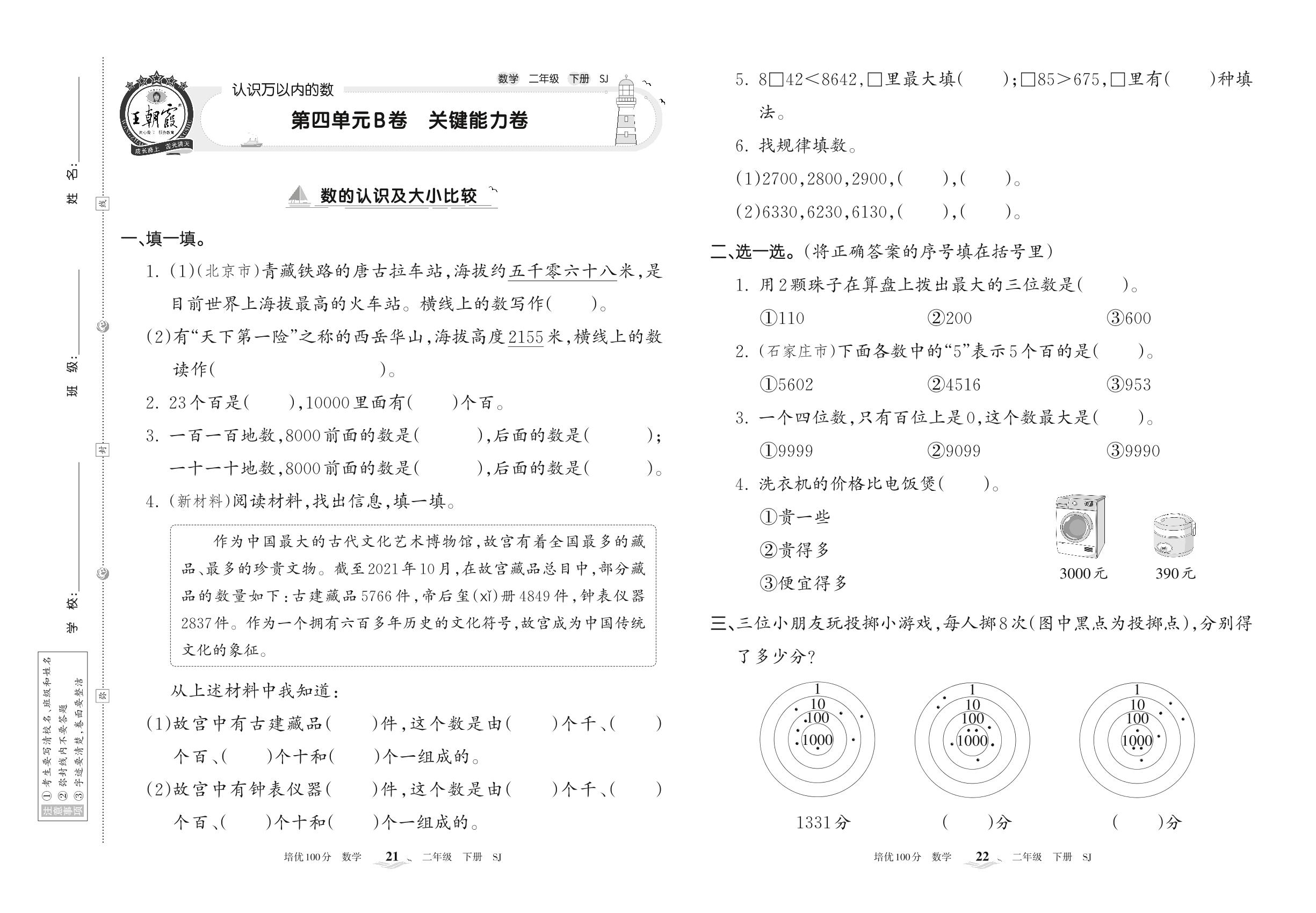 2022下册二年级数学苏教版 第四单元B卷 关键能力卷