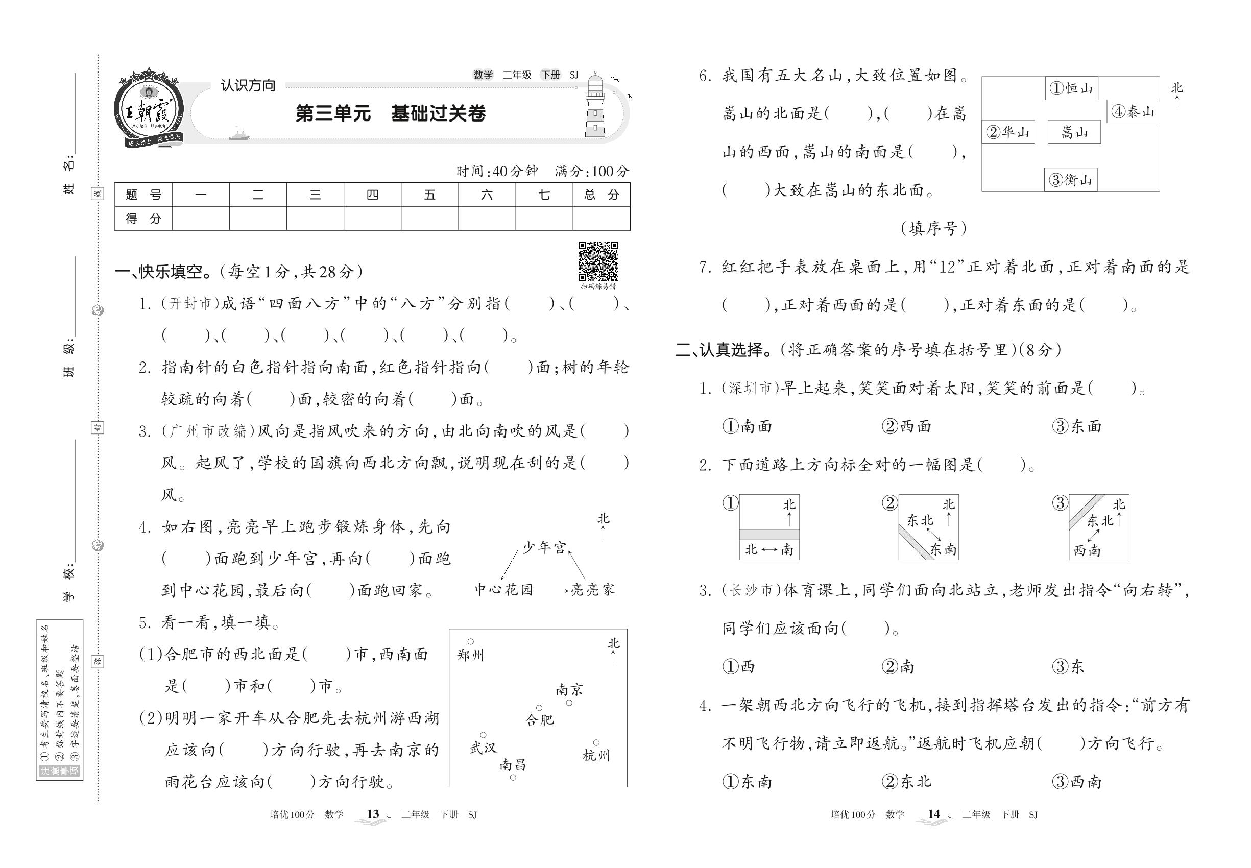 2022下册二年级数学苏教版 第三单元 基础过关卷