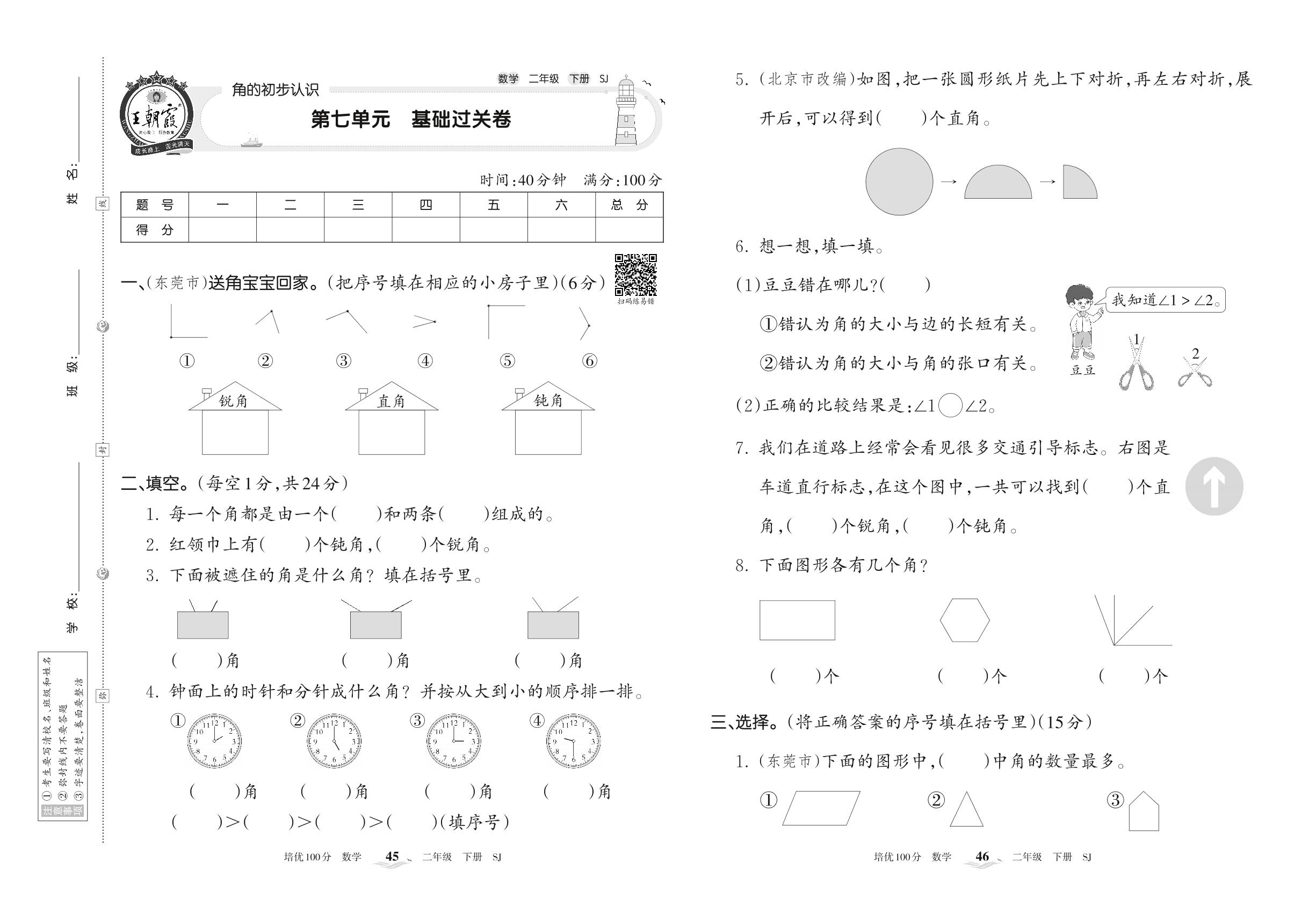 2022下册二年级数学苏教版 第七单元 基础过关卷