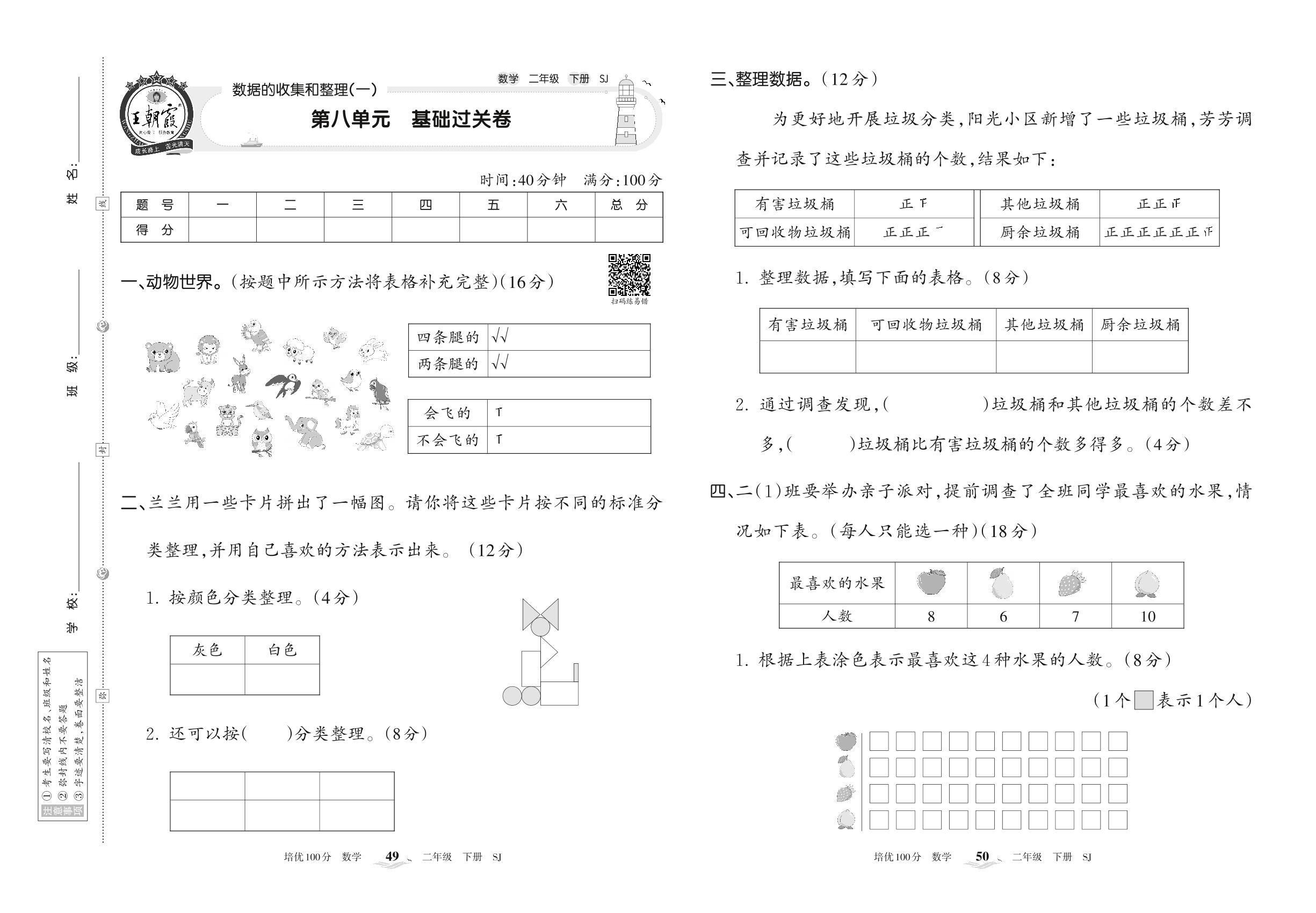2022下册二年级数学苏教版 第八单元 基础过关卷