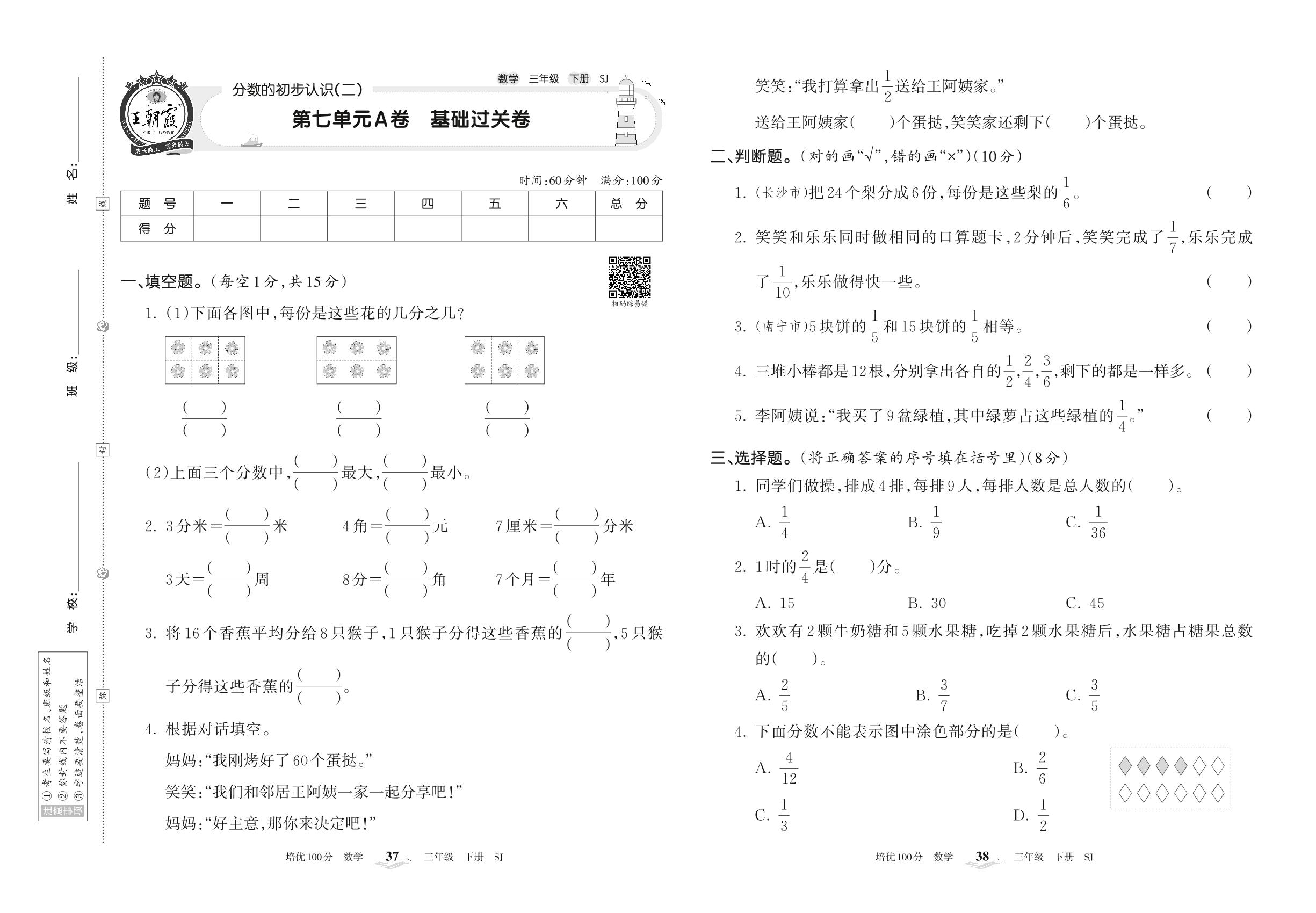 三年级数学苏教版下册单元卷