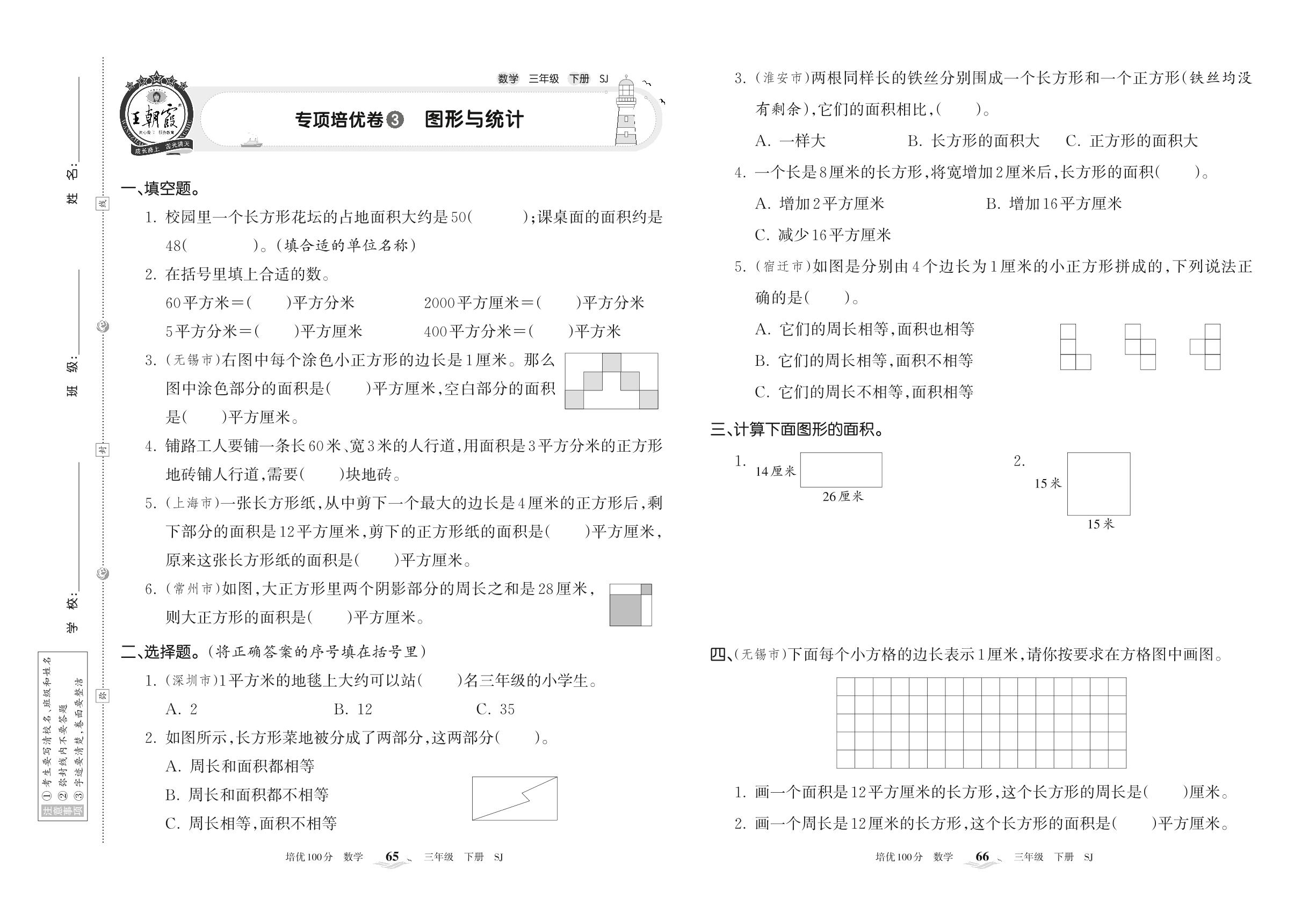 2022下册三年级数学苏教版 专项培优卷3 图形与统计