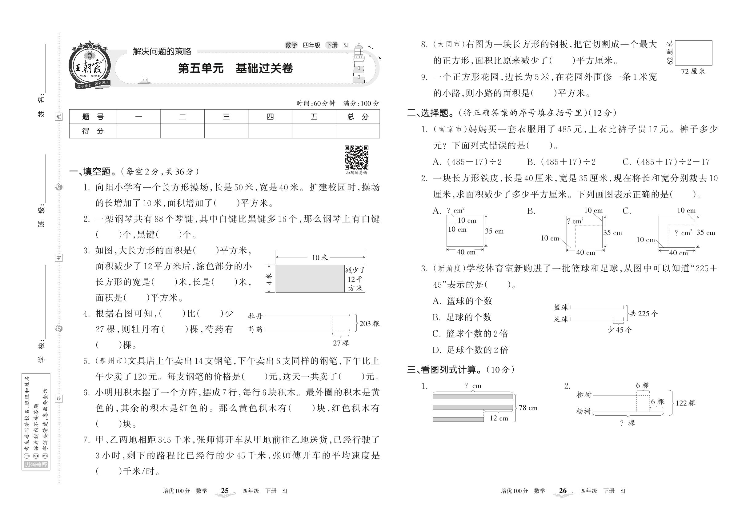 2022下册四年级数学苏教版 第五单元 基础过关卷