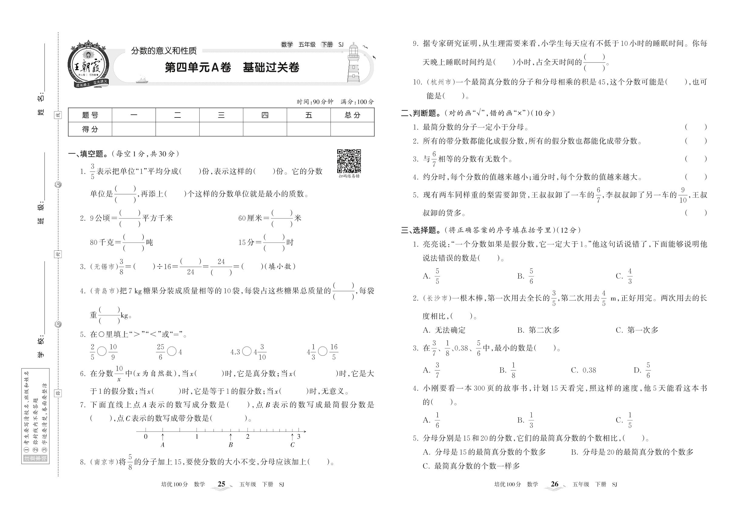 2022下册五年级数学苏教版 第四单元A卷 基础过关卷
