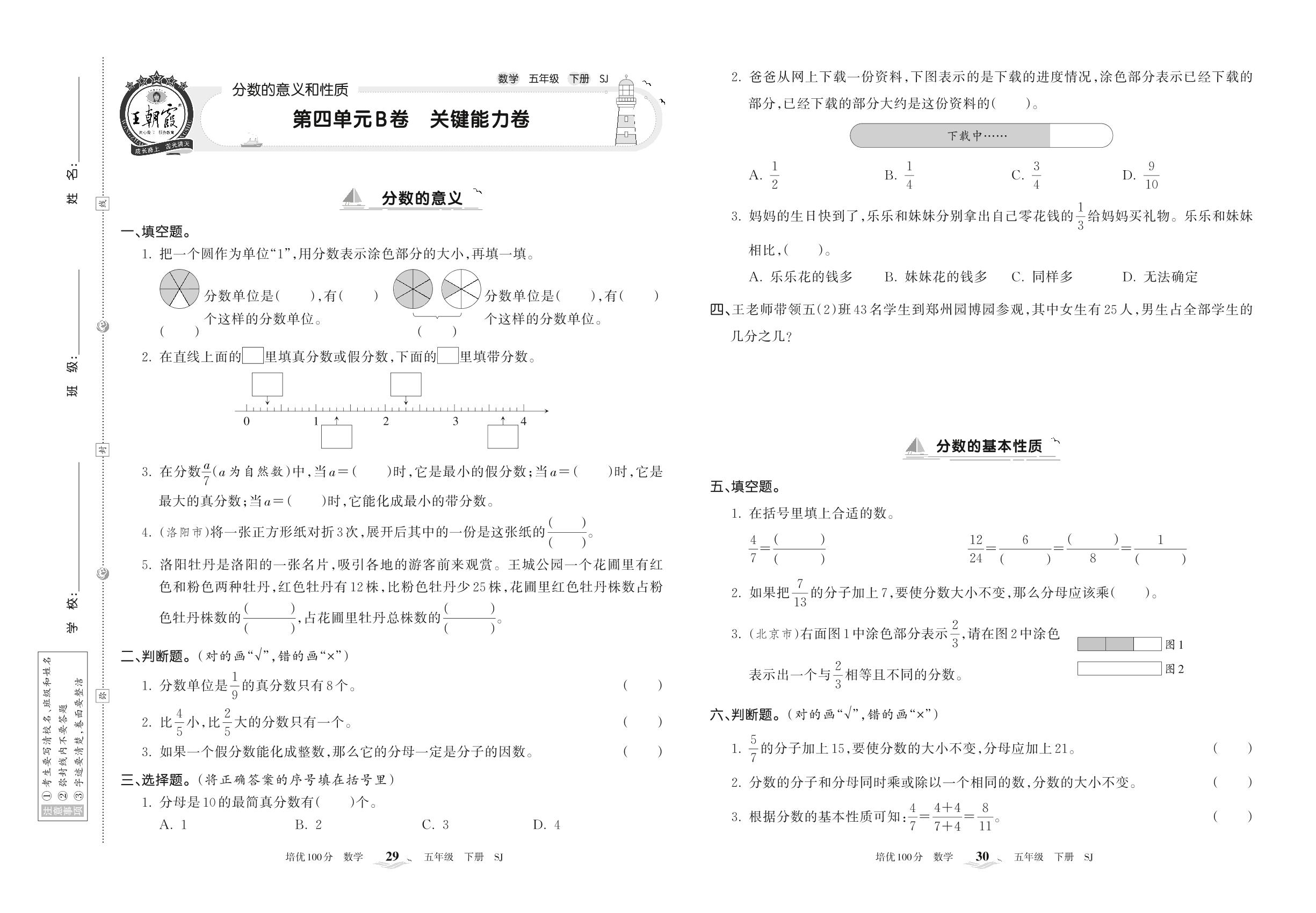 2022下册五年级数学苏教版 第四单元B卷 关键能力卷