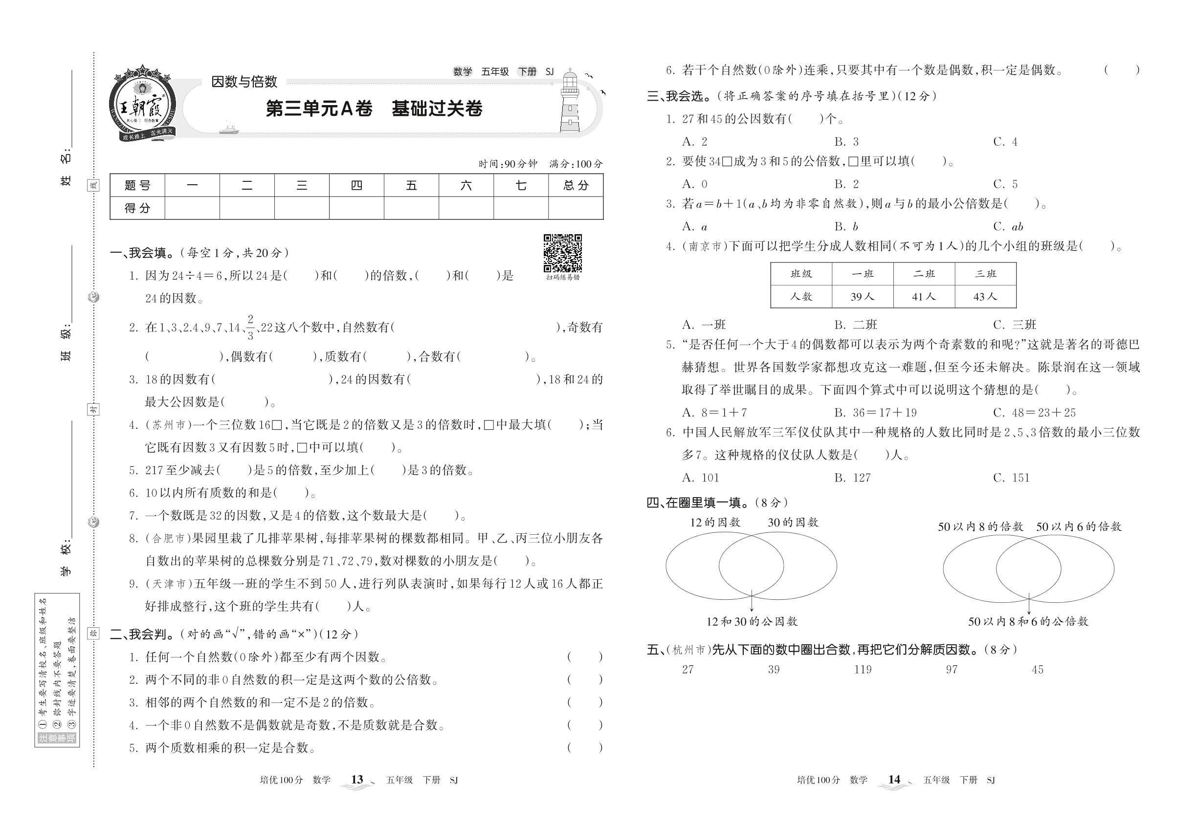 五年级数学苏教版下册单元卷