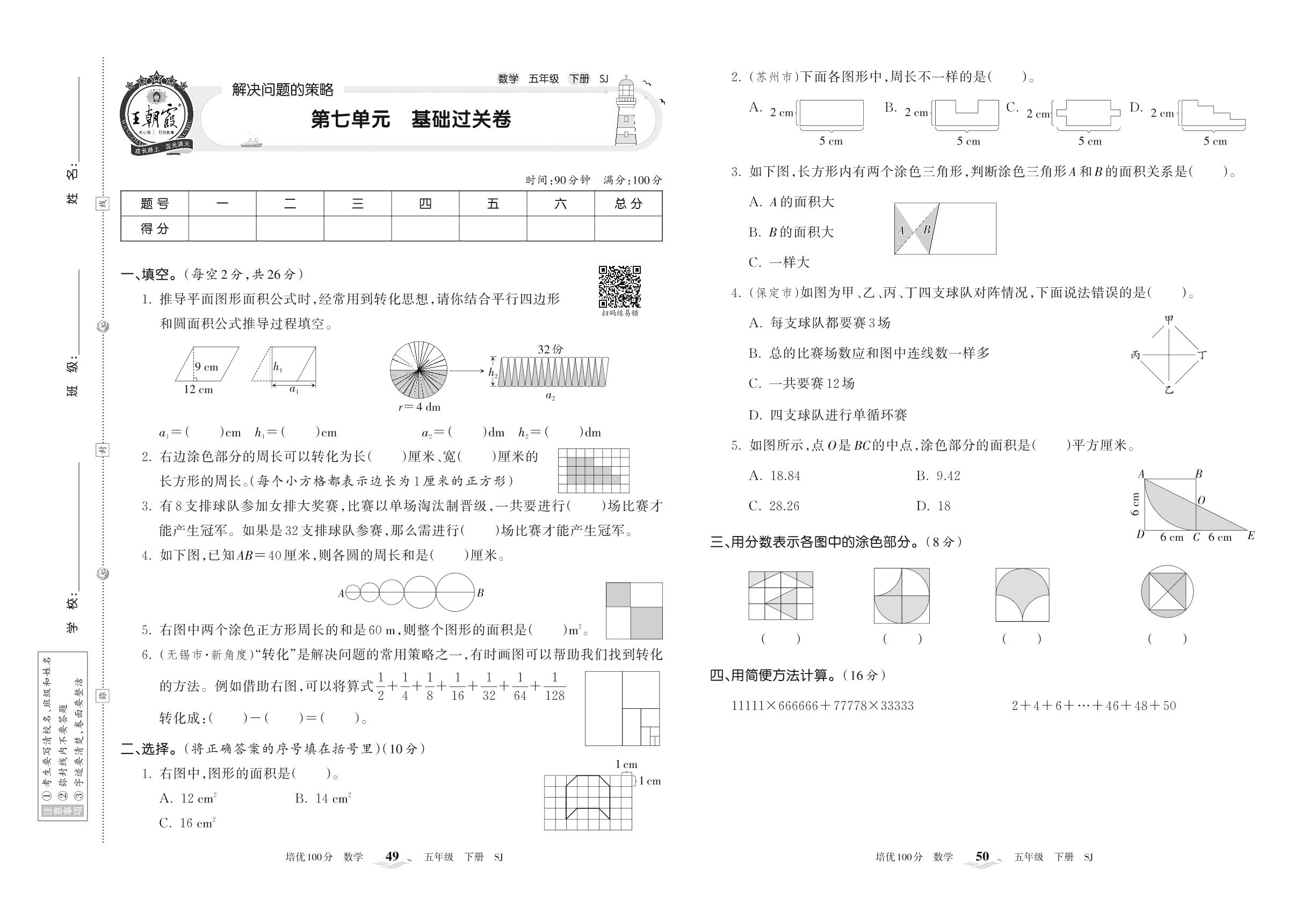 2022下册五年级数学苏教版 第七单元 基础过关卷