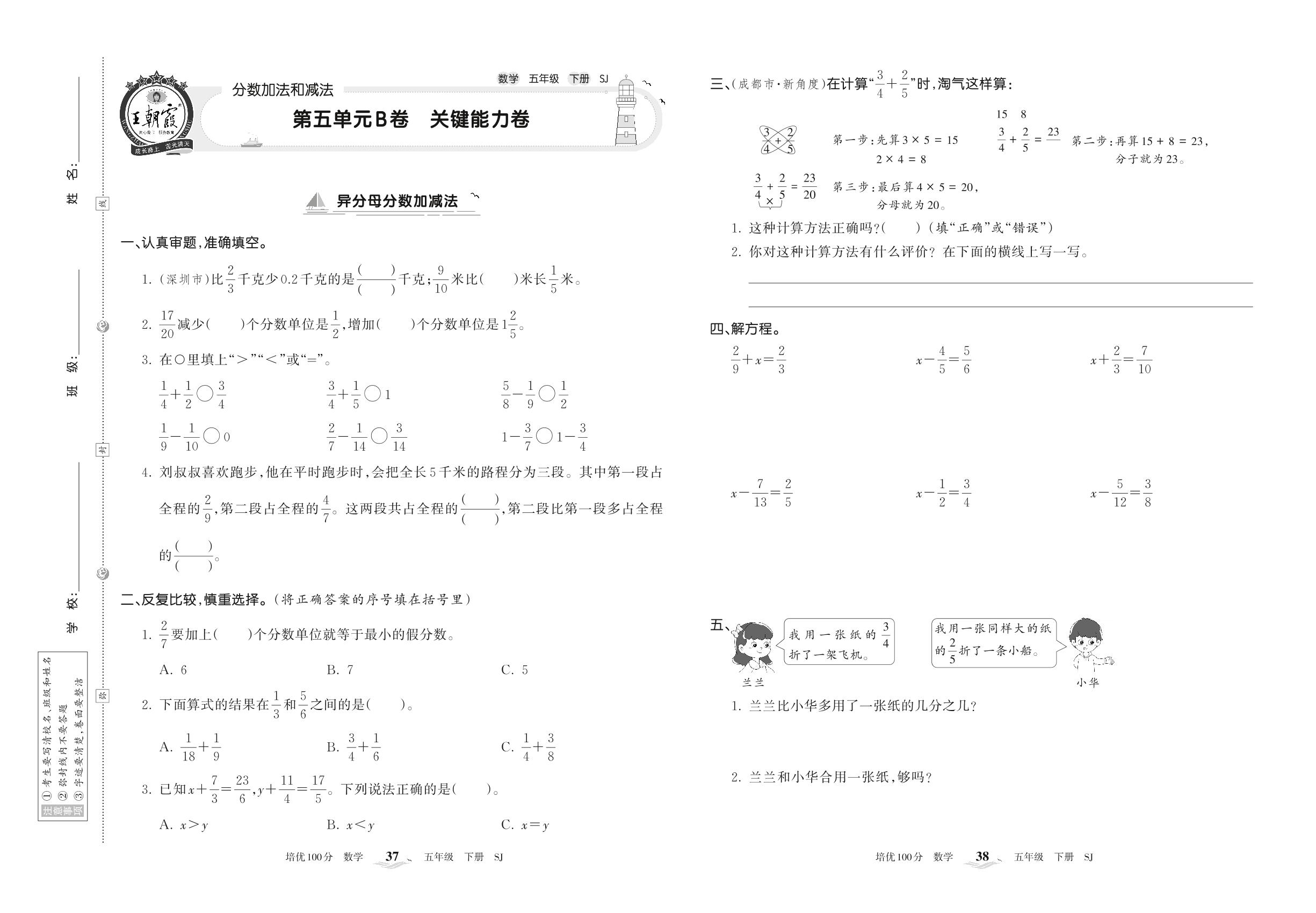 2022下册五年级数学苏教版 第五单元B卷 关键能力卷