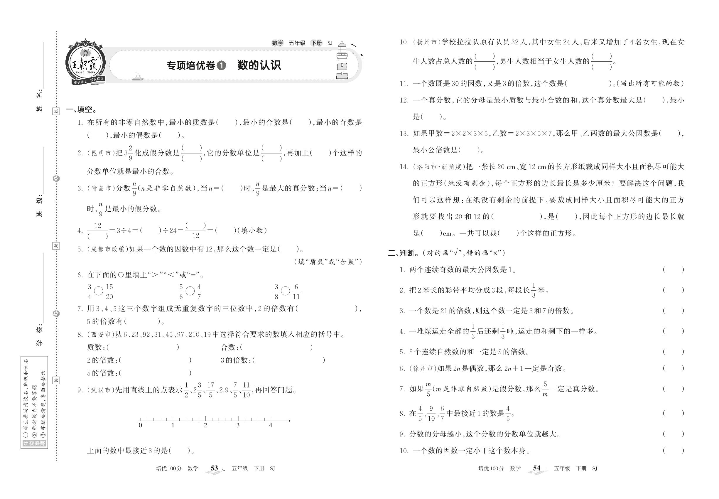 2022下册五年级数学苏教版 专项培优卷1 数的认识