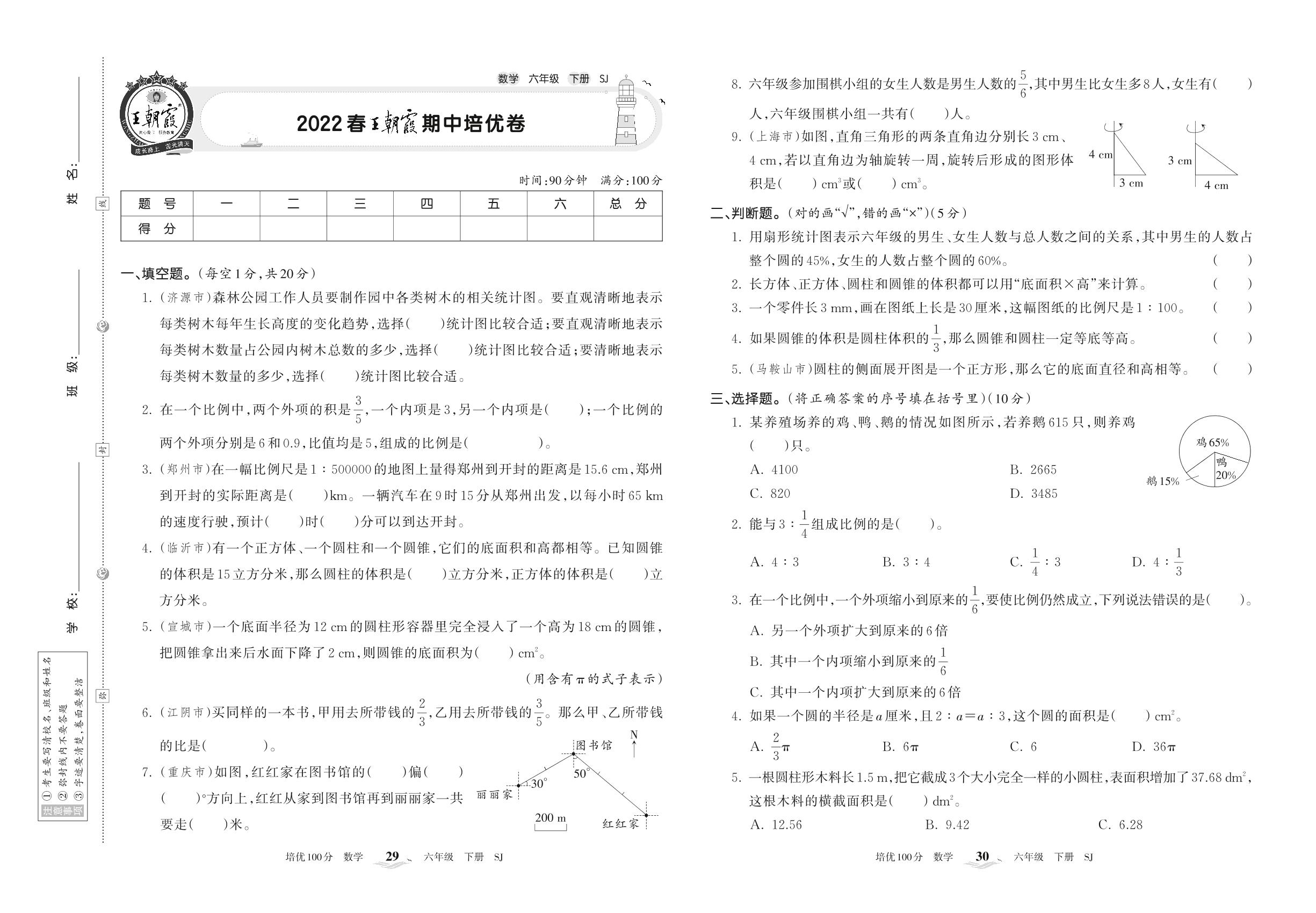 2022下册六年级数学苏教版 王朝霞期中培优卷